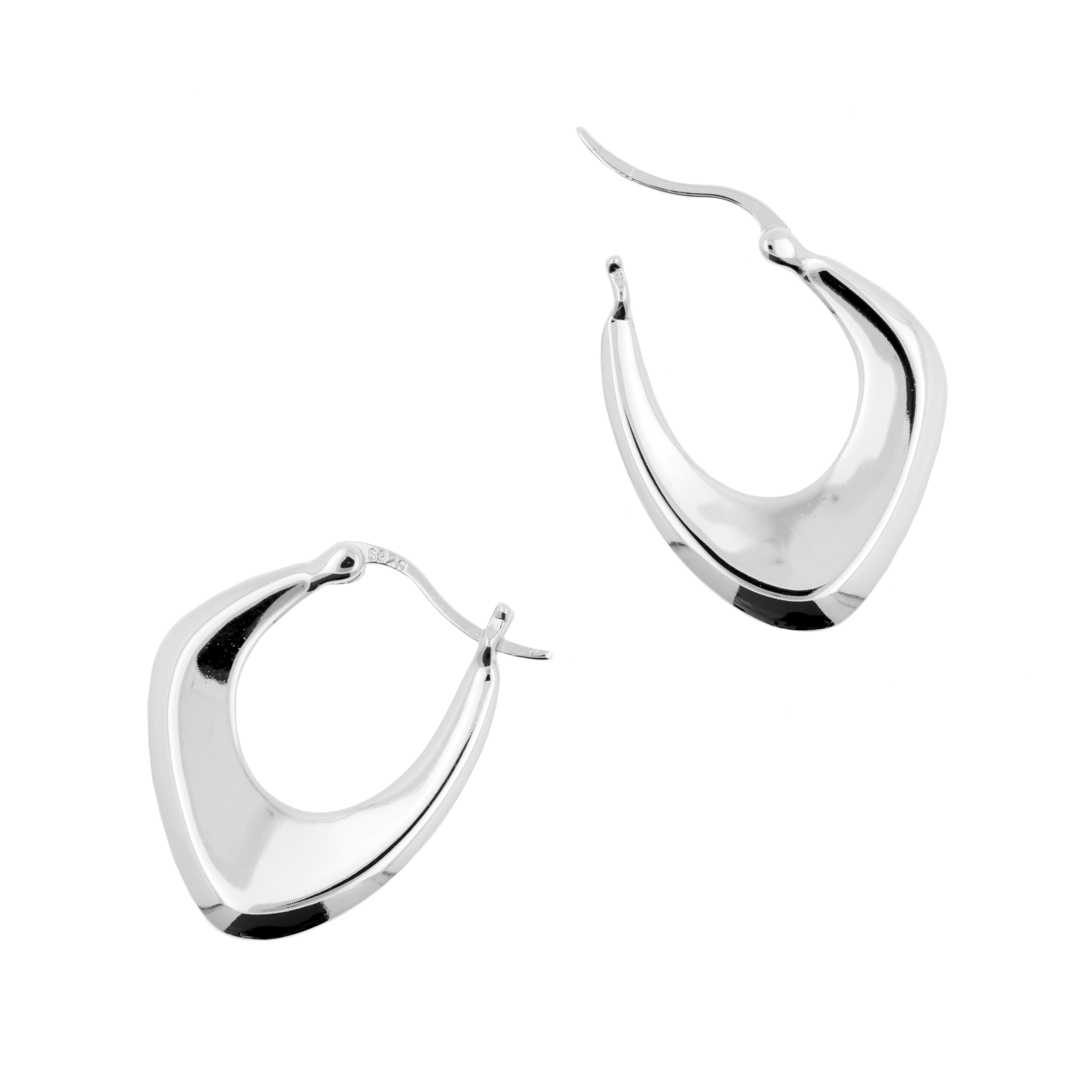 925 Silver Ear Hoops - Organic Ellips - Silver