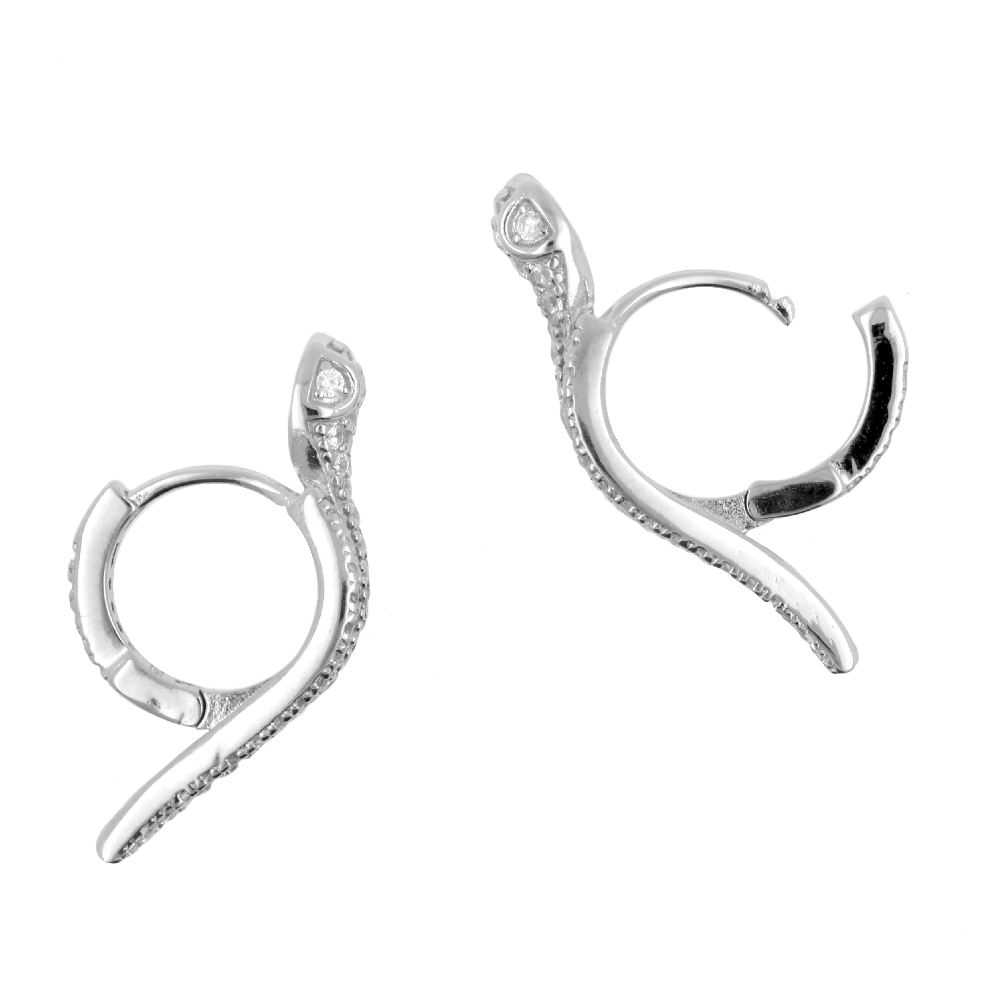 925 Silver Ear Hoops - Zirconia Snake - Silver
