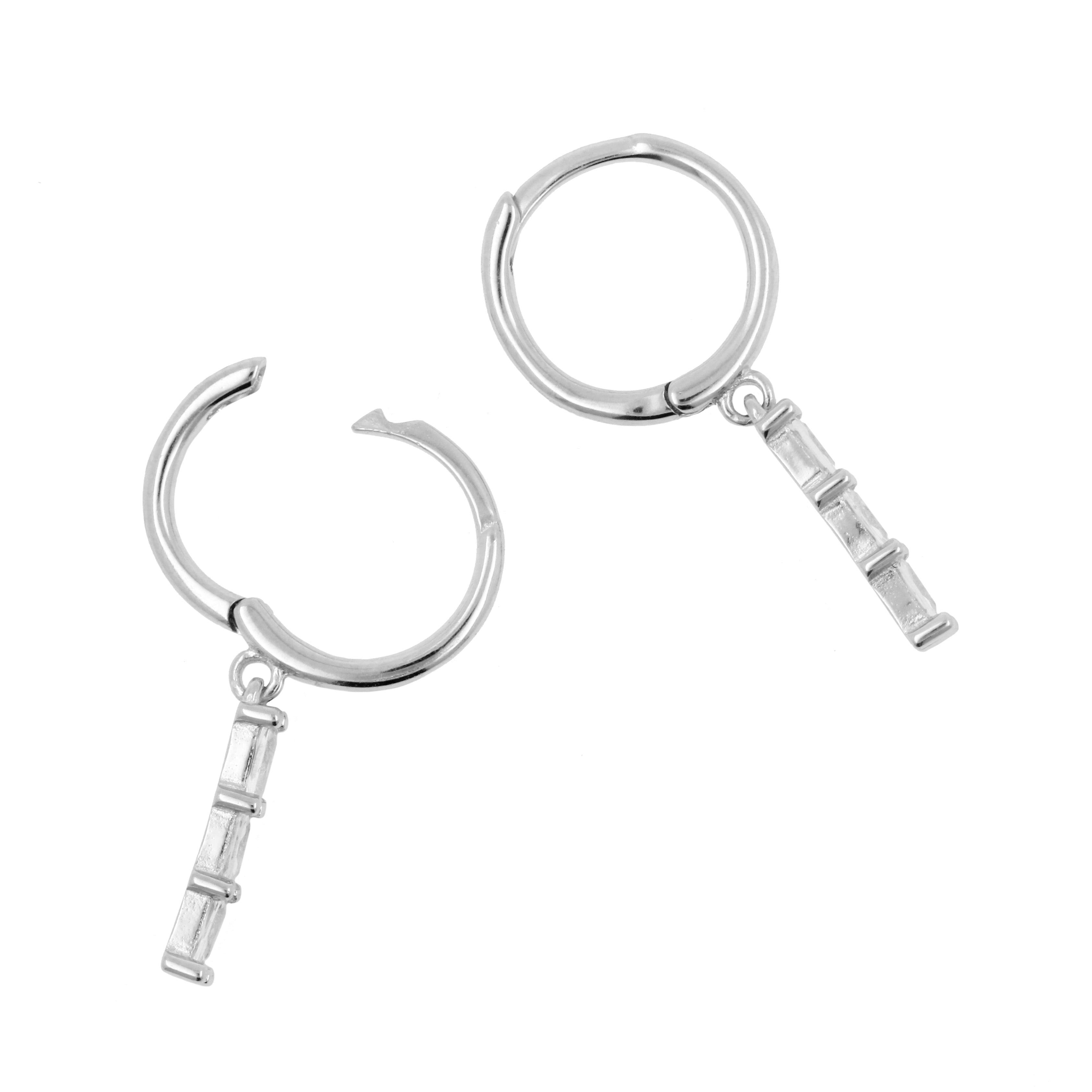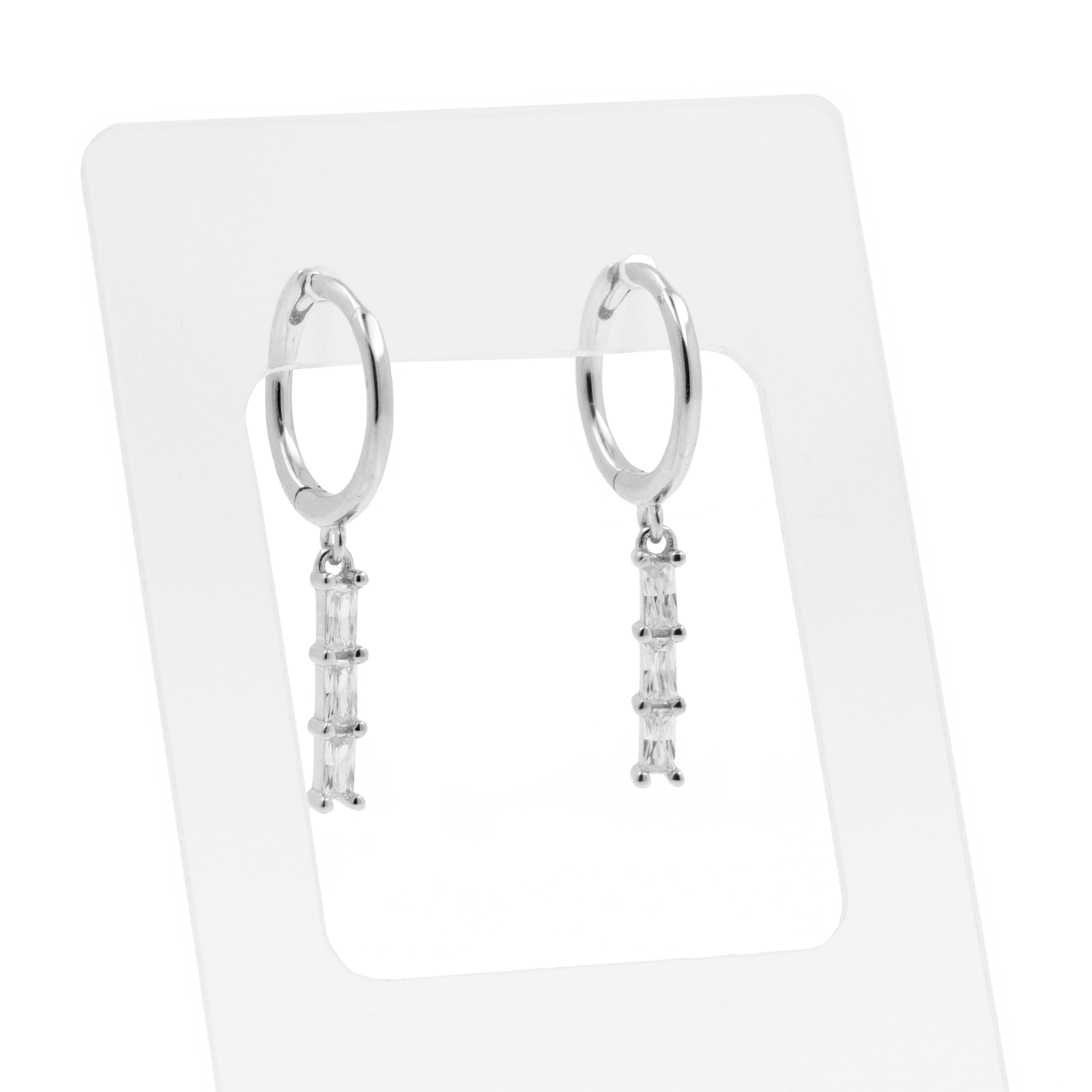 925 Silver Ear Hoops - Zirkonia Bar Silver