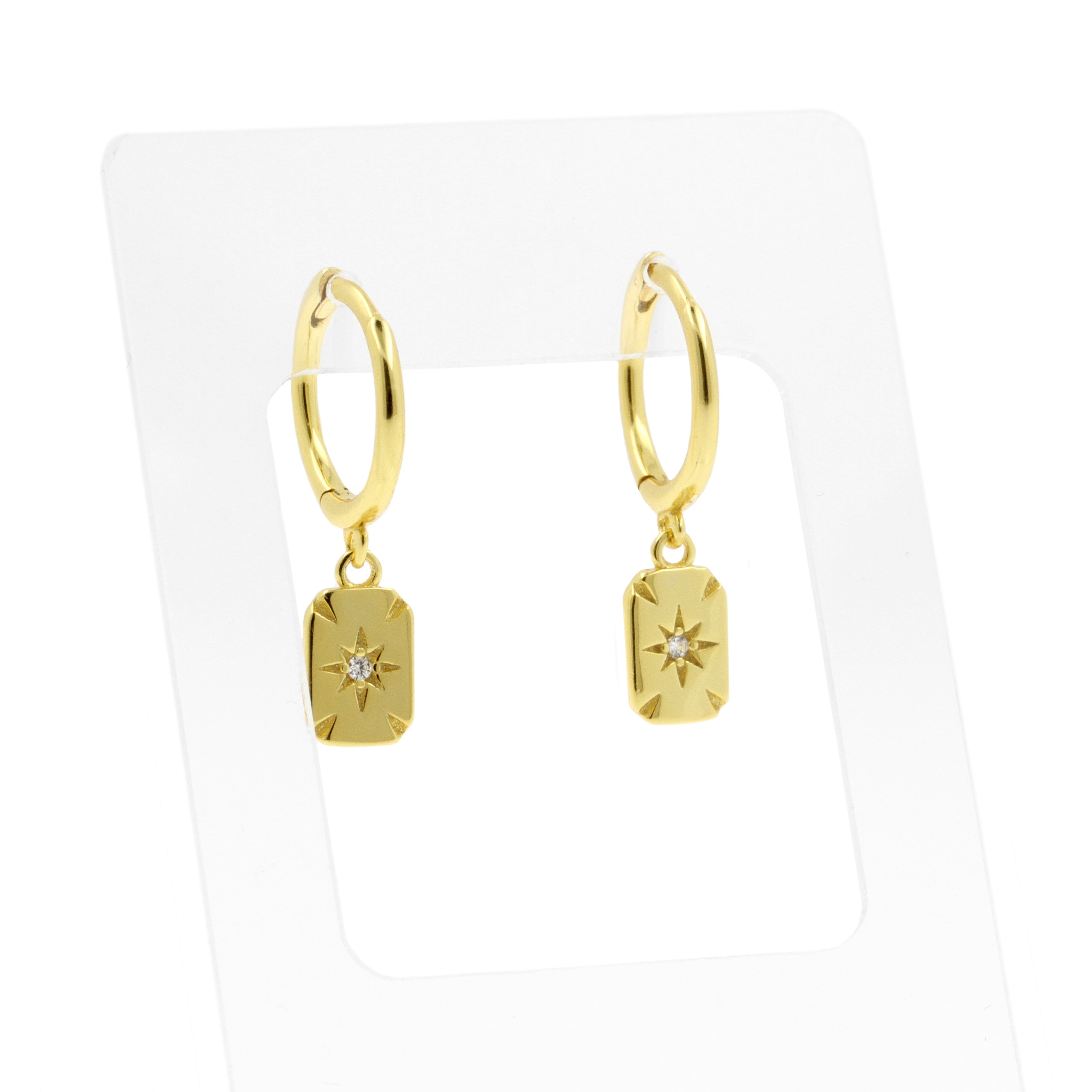 925 Silver Ear Hoops - Zirkonia Square Gold