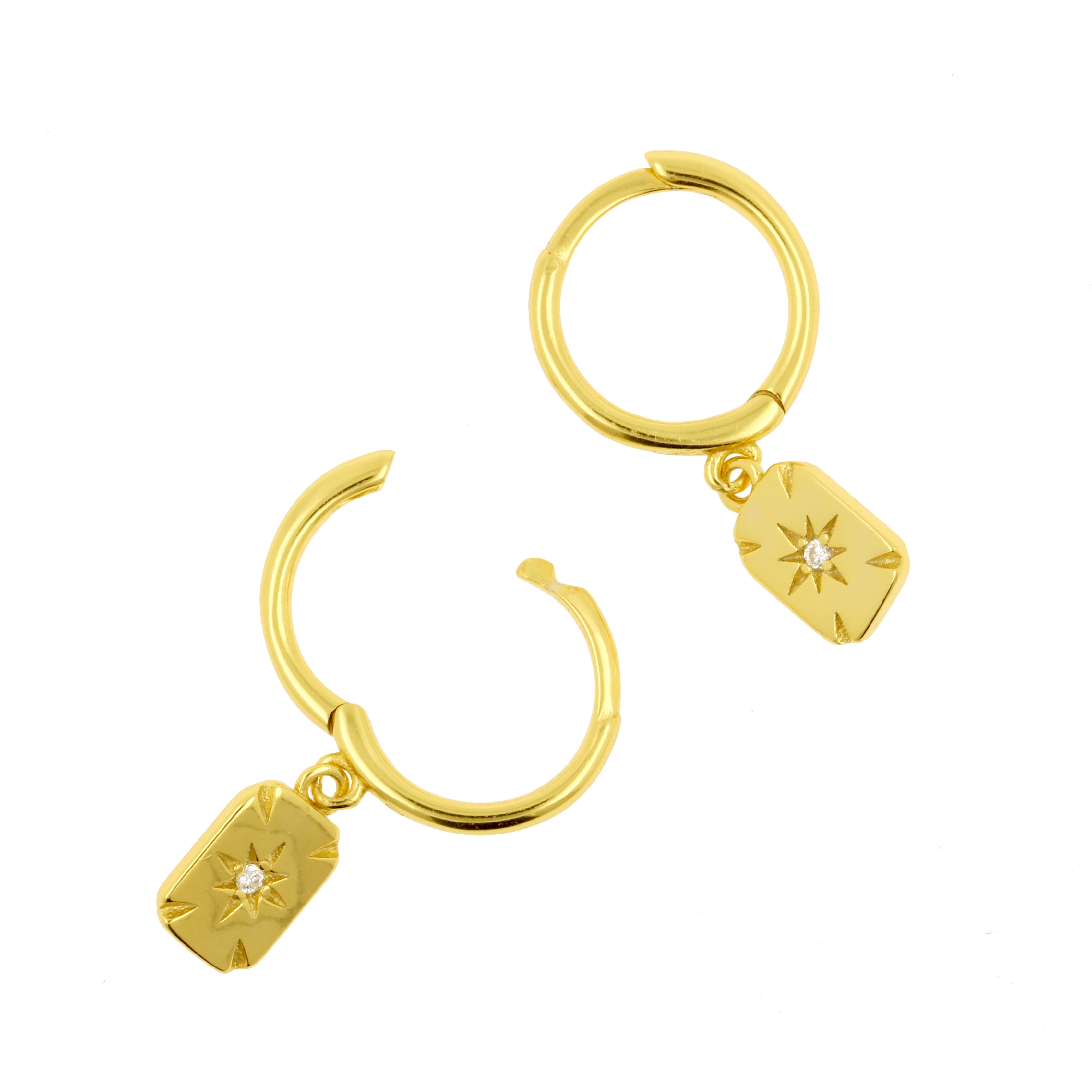 Complete your look with these lovely Charm Earrings! Made of gold plated 925 Sterling Silver, fitted with lovely charm and perfect for regular size earring piercings. Easy to open and close, making this earring very comfortable to wear. Sold per piece, so you can create your very own jewelry and letter combinations. Trendy earrings that are a must have for your jewelry collection!