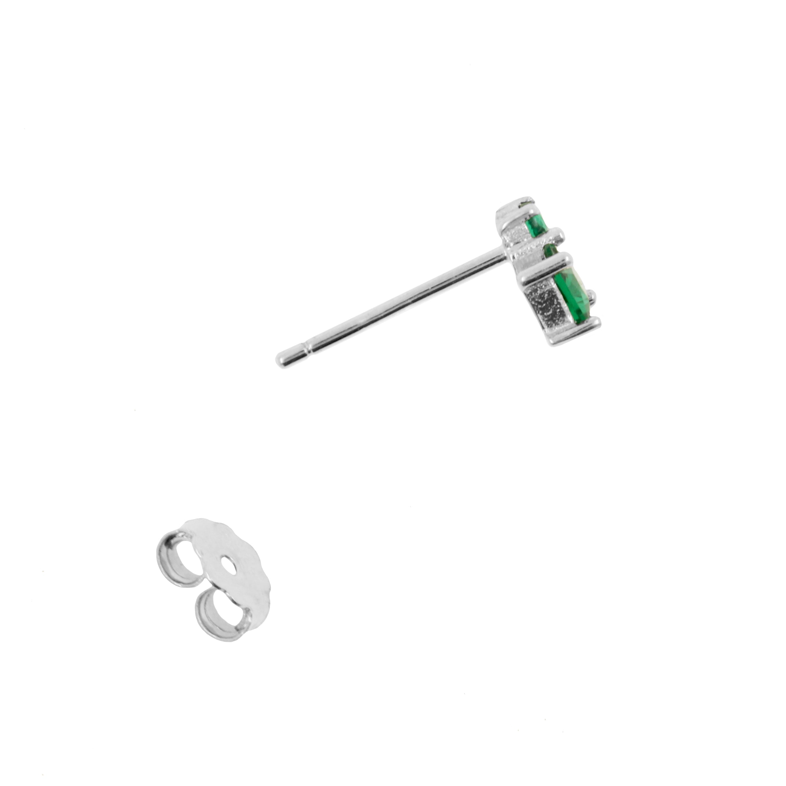 925 Silver Earstuds With Green Gems - Silver