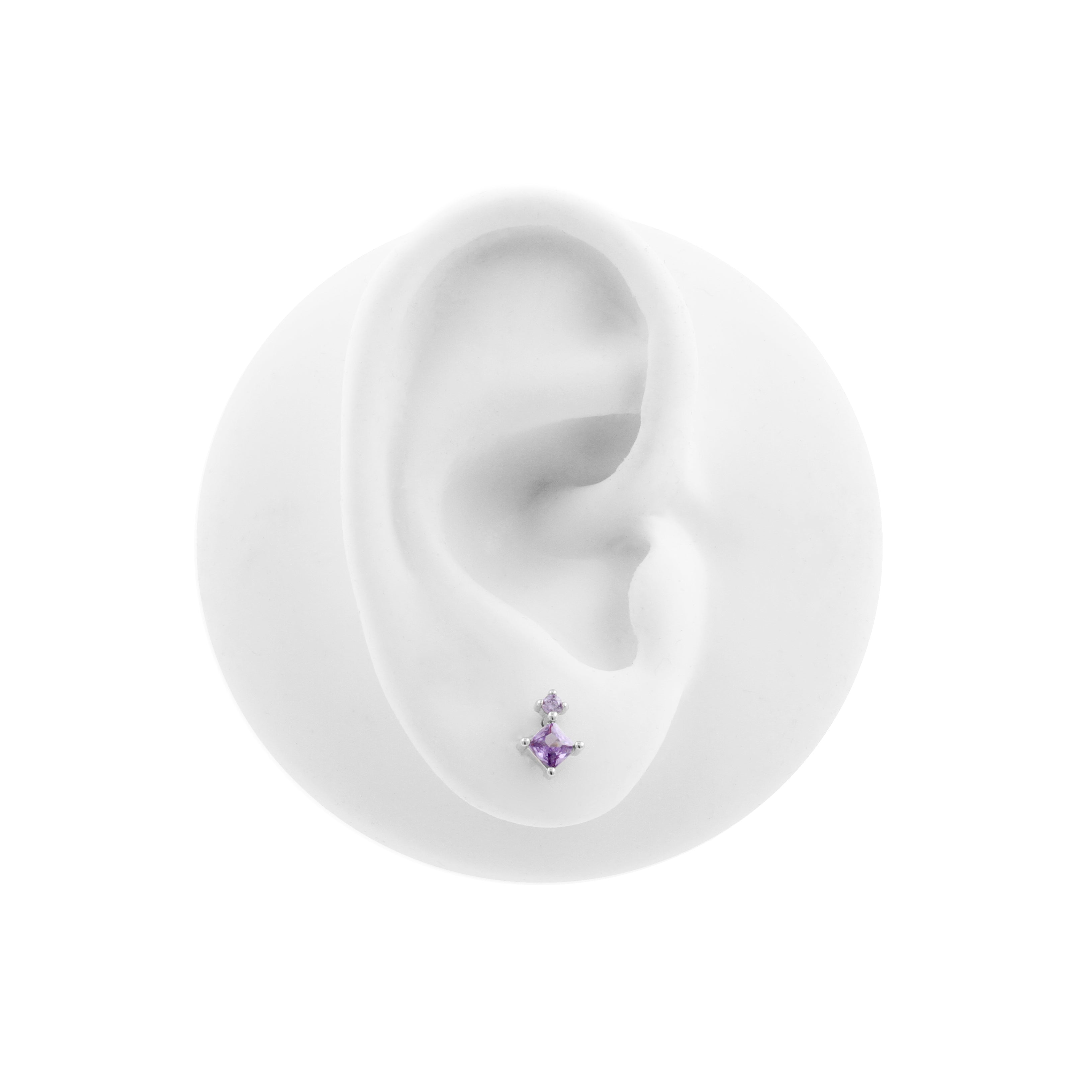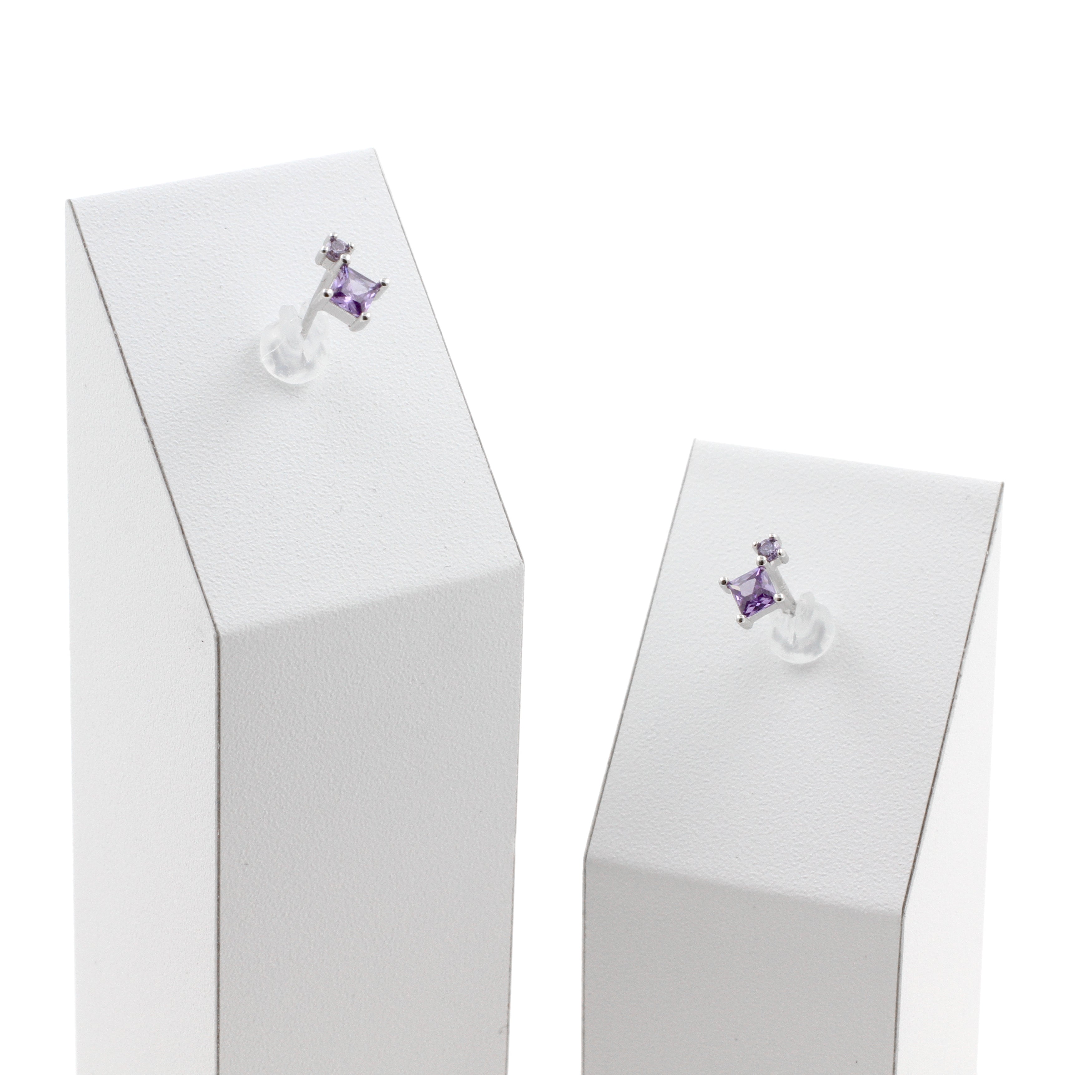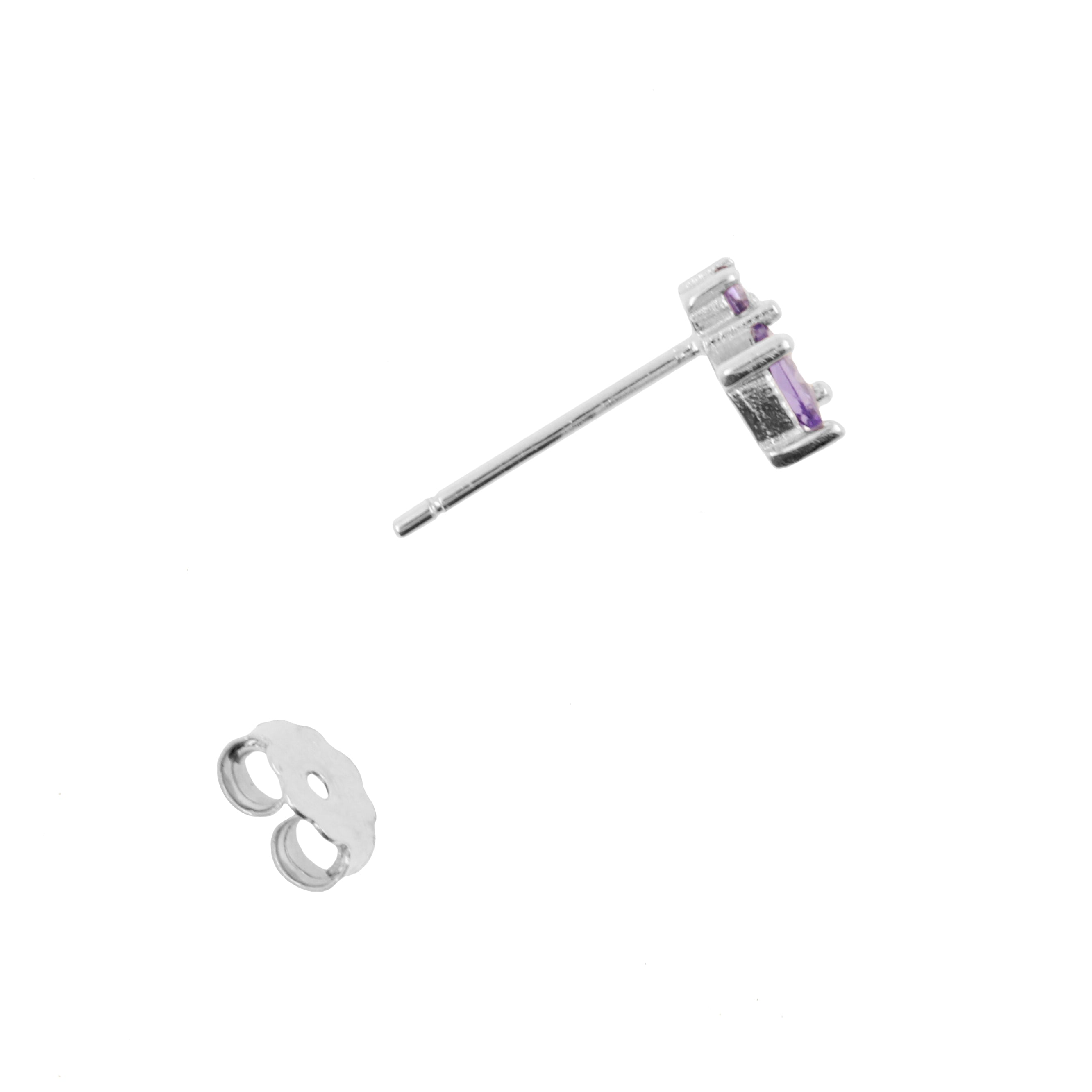 925 Silver Earstuds With Purple Gems - Silver