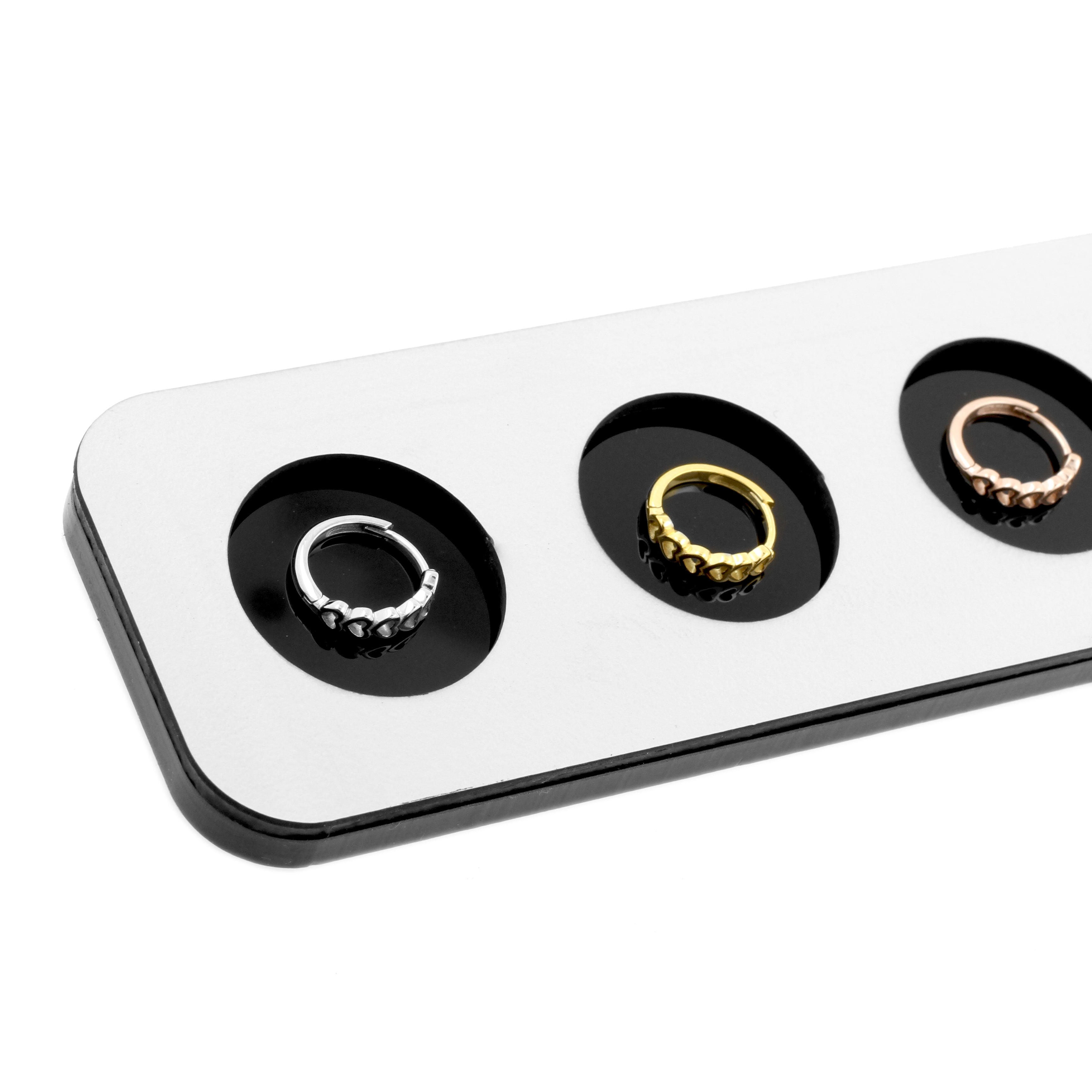 Beautiful display for piercing rings. Suitable for displaying 6 rings.
