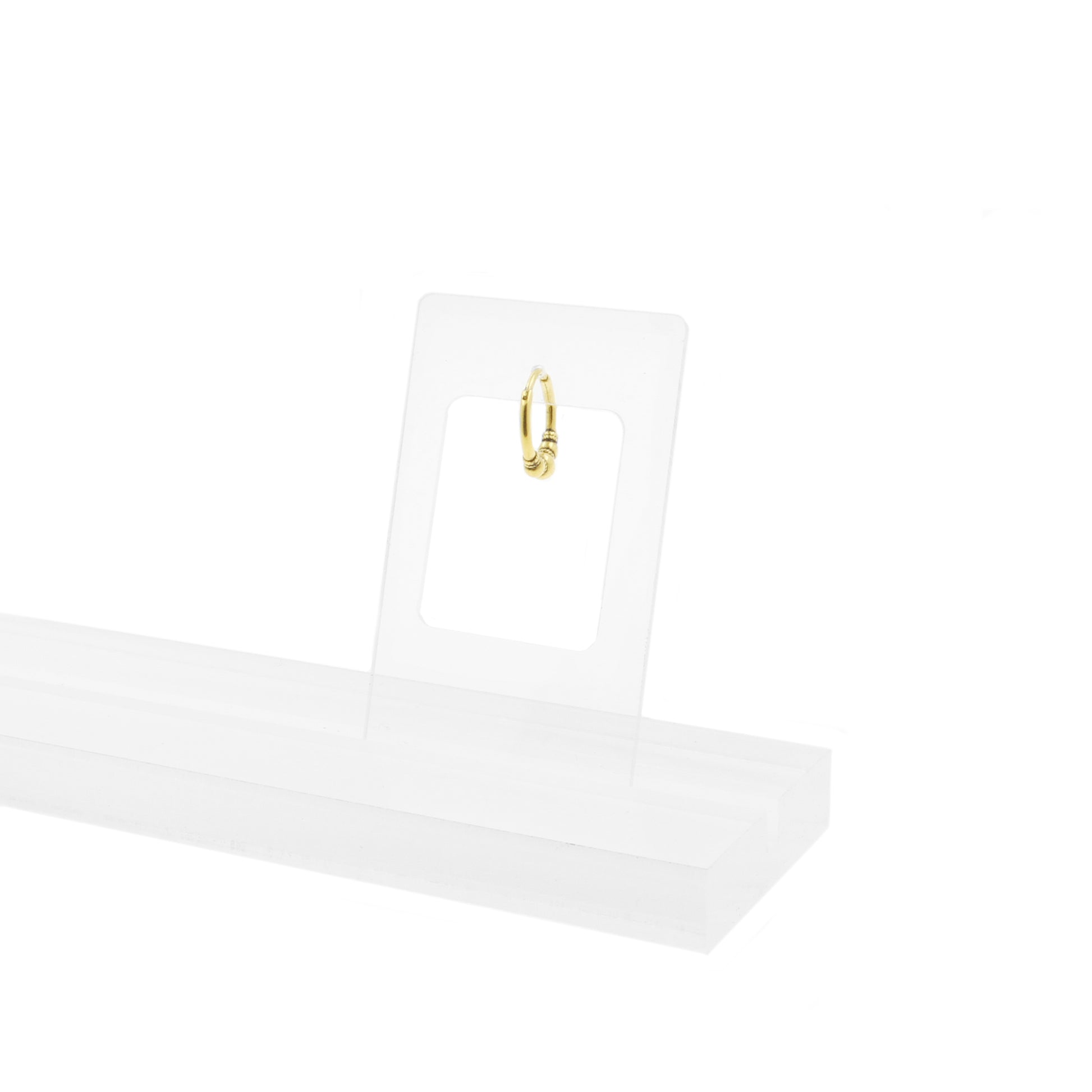 Handy, acrylic display for showing your jewelry collections. The displays are card-shaped with a dimension of 37 x 60 mm, great for easy display of all kinds of jewelry for your customers. Packed per 5 pcs.