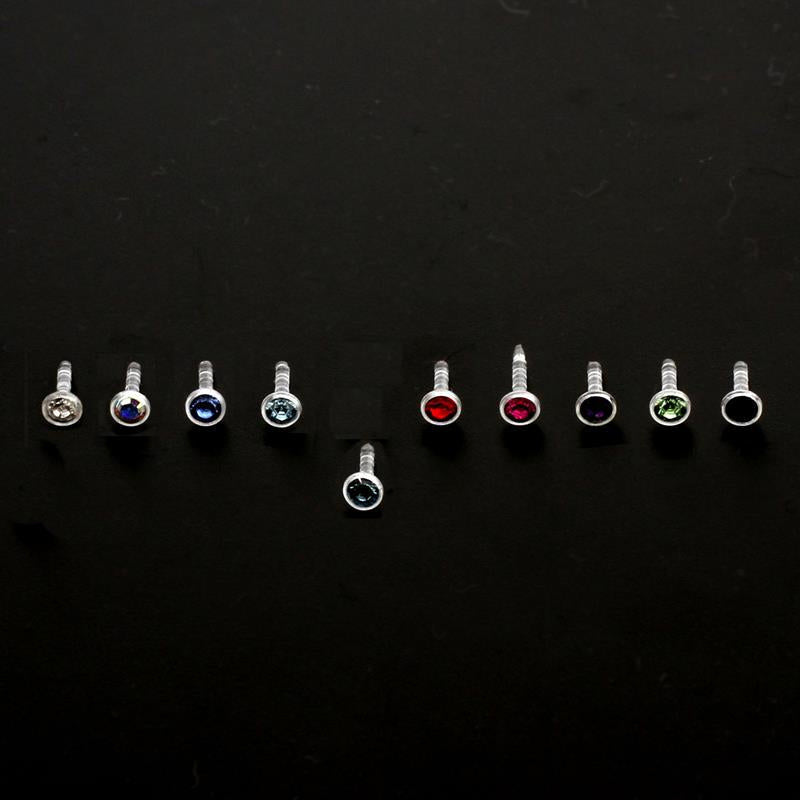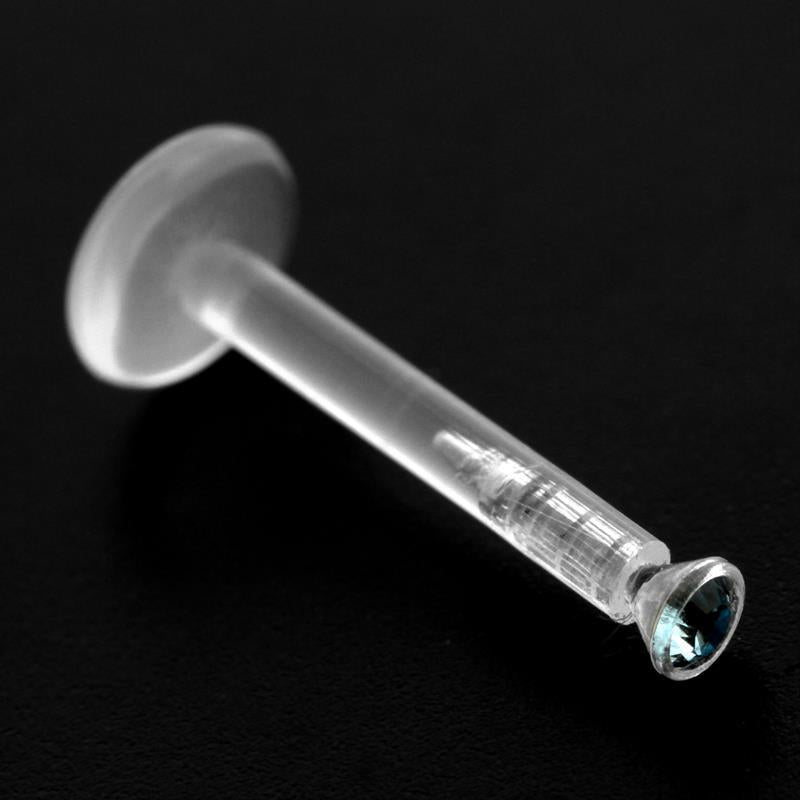 Spice up your labret! These Bioplast inserts are set with a small facetted crystal and suitable for our 1,2 mm and 1,6 mm push fit labrets.