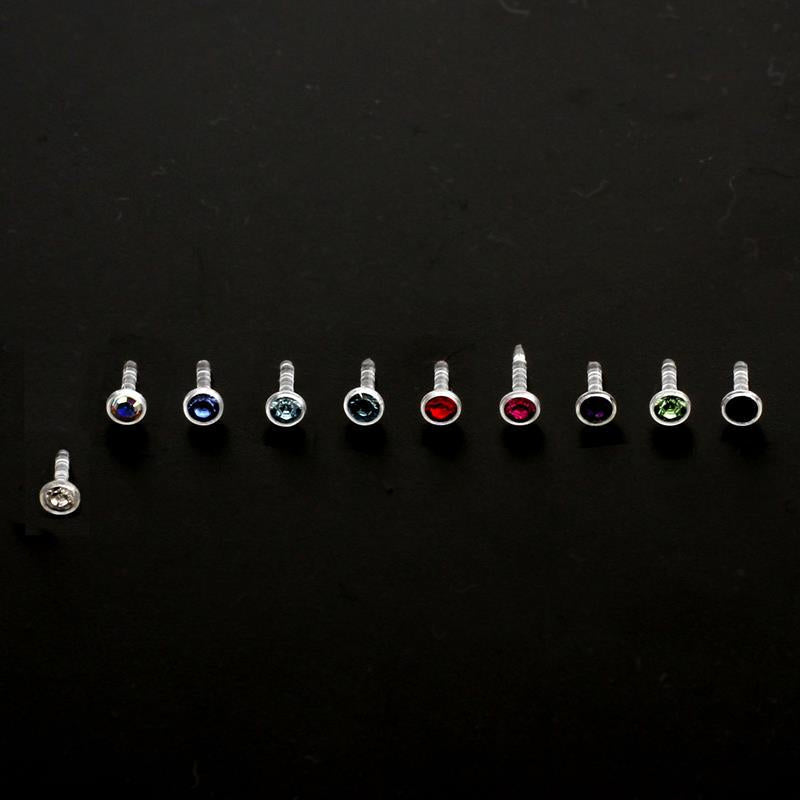Spice up your labret! These Bioplast inserts are set with a small facetted crystal and suitable for our 1,2 mm and 1,6 mm push fit labrets.