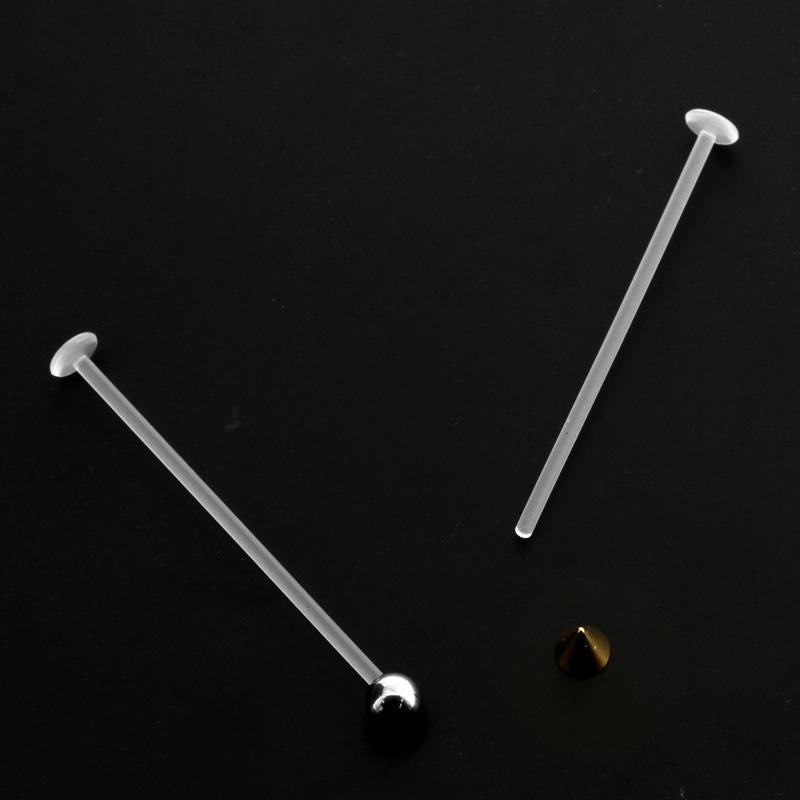 Want to add more comfort to your piercings? Look no further! These 1,6 mm Bioplast labret studs measure 45 mm long so you can cut them to the desired length. The flexible nature of Bioplast will ensure very comfortable wear for any lip piercing. You can also use these studs to create your own custom jewelry, in combination with our 1,6 mm balls or 1,6 mm spikes.