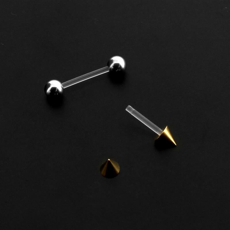 Bioplast is a light and flexible polymeric material specifically developed for piercings. The ends of this barbell post are slightly threaded, but make sure you pre-tap the thread before you start wearing your jewelry. Simply screw and unscrew with a metal threaded ball of a Bioplast threading tool. Need to shorten the length of your jewelry? No problem! Simply cut the post to your desired length, add some thread to the end and you're good to go. Please note that you will receive the seperate post only upon ordering, without threaded balls or other accessories.