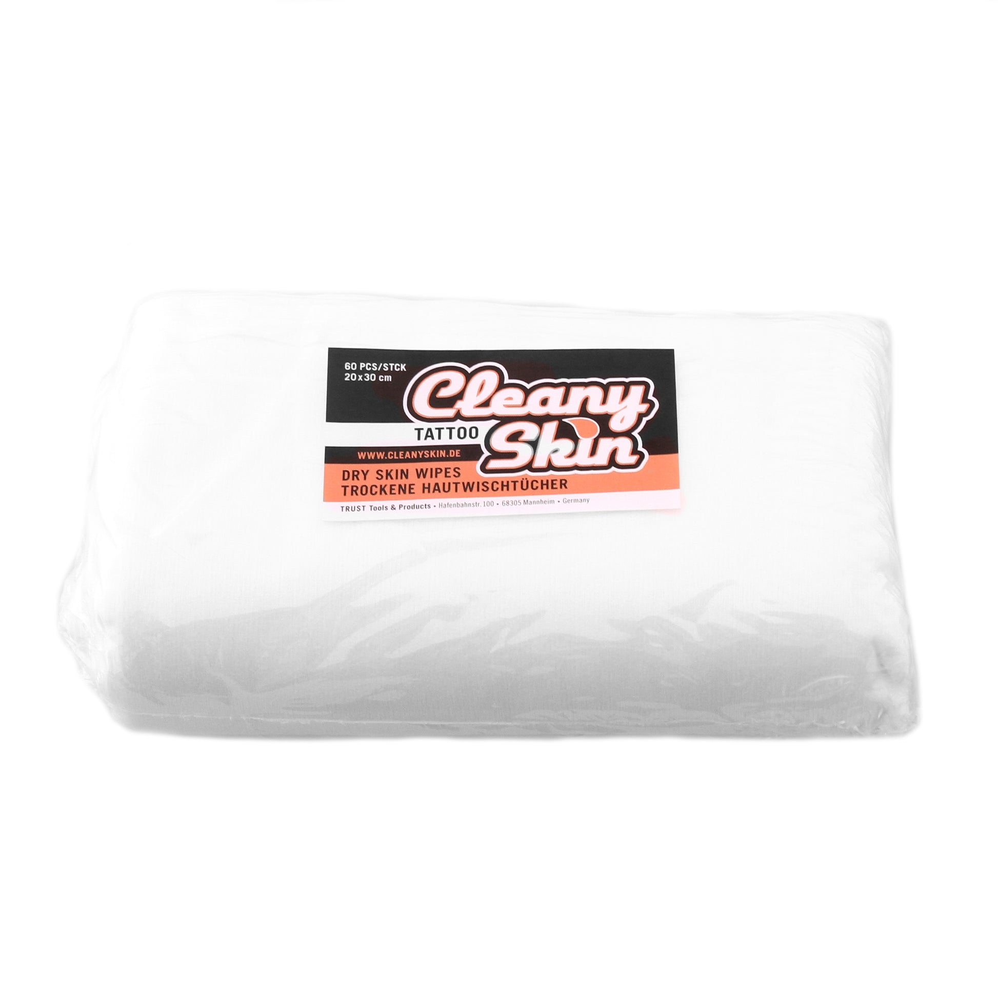De perfecte wipes voor tijdens het tattoëren. Deze Cleany Skin wipes kunnen nat of droog gebruikt worden en je hebt er per sessie maar enkele nodig. De wipes zijn zacht en sterk en zullen de huid niet onnodig irriteren. Per pak van 60 stuks