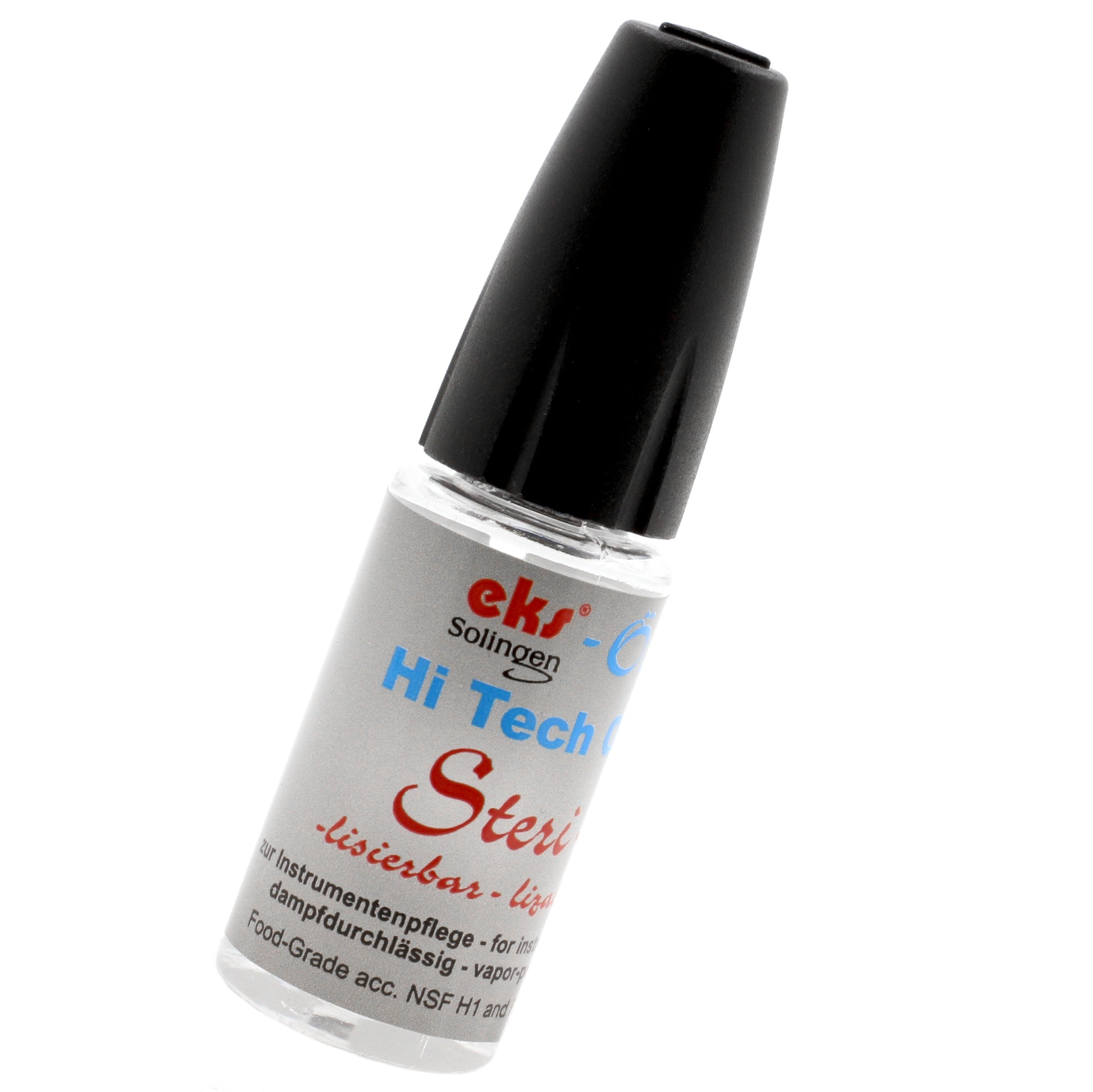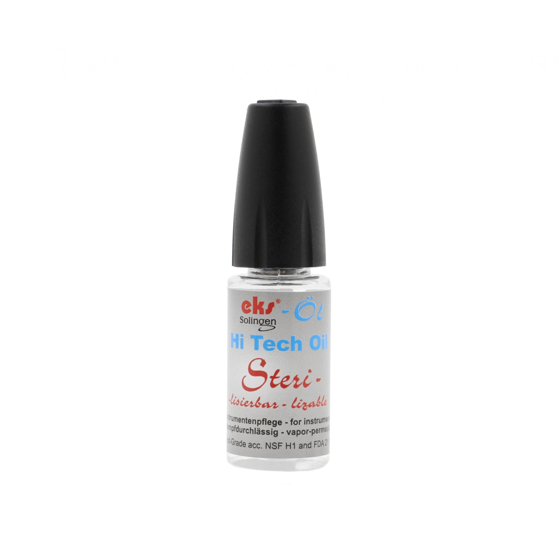Keep your piercing clamps, scissors and other tools in perfect condition with this high end instrument oil! The instrument oil is sterilisable and will protect your piercing and tattoo tools against corrosion and ensures a supple operation. High tech oil, with easy to use tip for precision application. Contents: 10 ml.