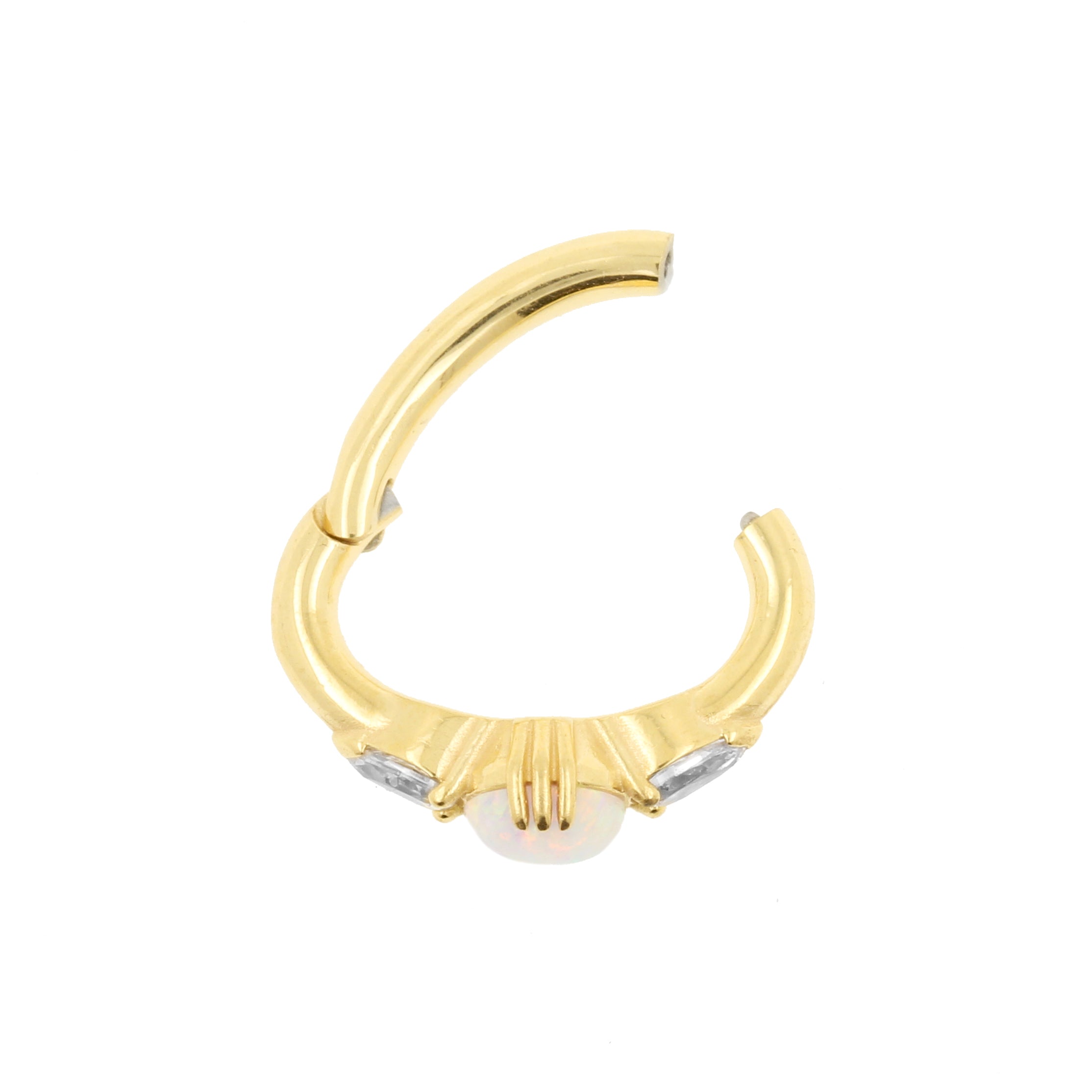 Nickel-Free Stainless Steel Belly Ring Clicker - Opal And Zirconia White Opal