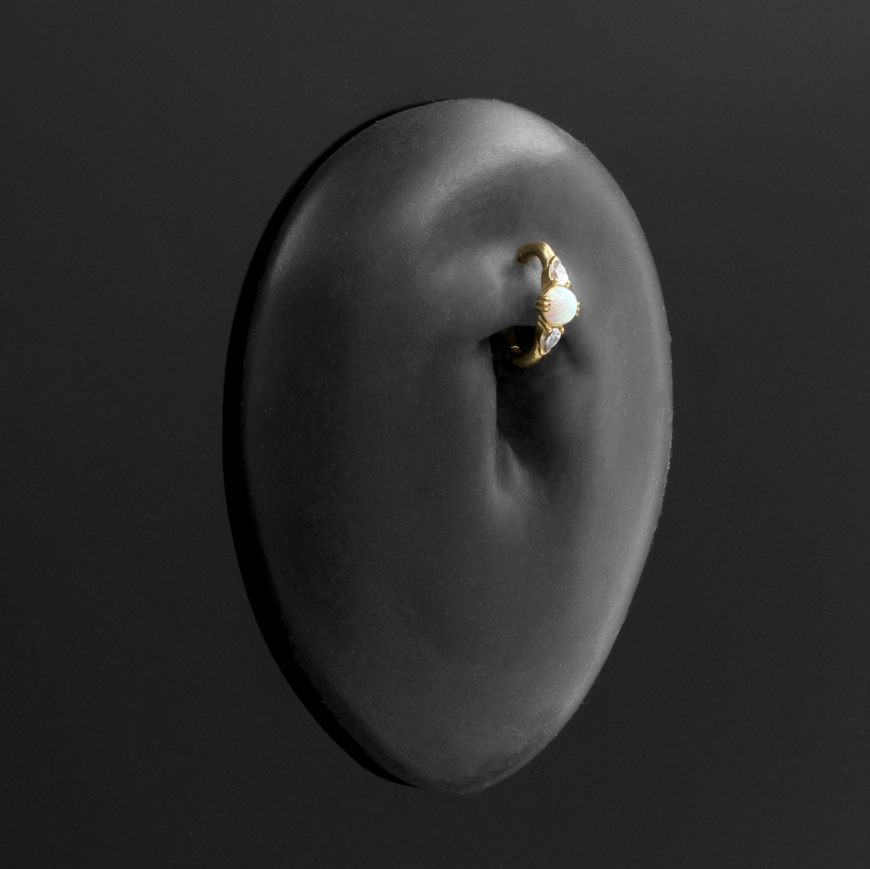 Make your belly ring sparkle with our comfortable belly ring clickers! This lovely belly ring clicker is made of cobalt chromium and set with premium zirconia and synthetic opal. The easy to use clicking mechanism makes chaning your belly ring jewelry a breeze. The oval shape hugs your navel snugly, making these clickers super comfortable to wear. Beautiful belly ring jewelry that is an absolute must have for your jewelry collection!