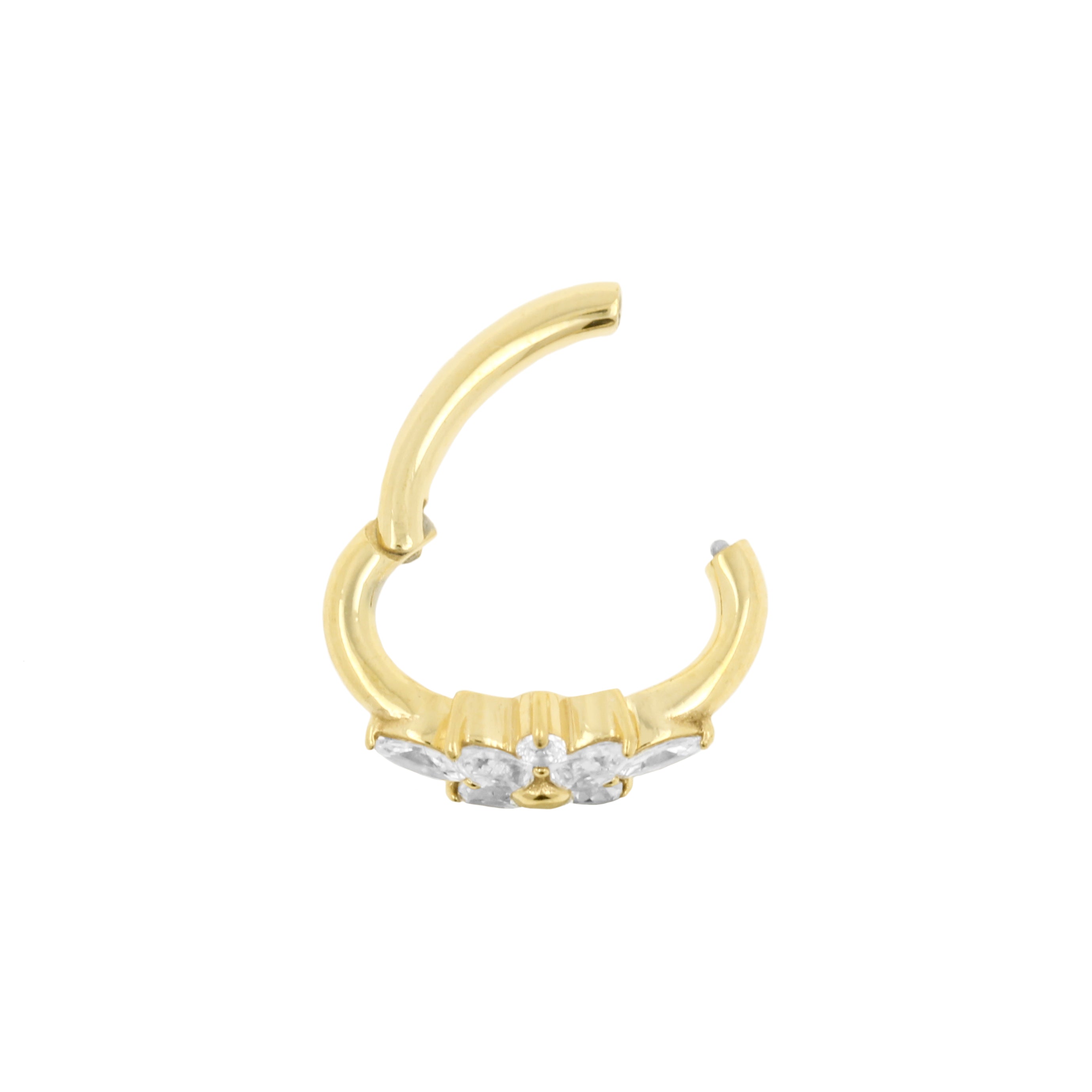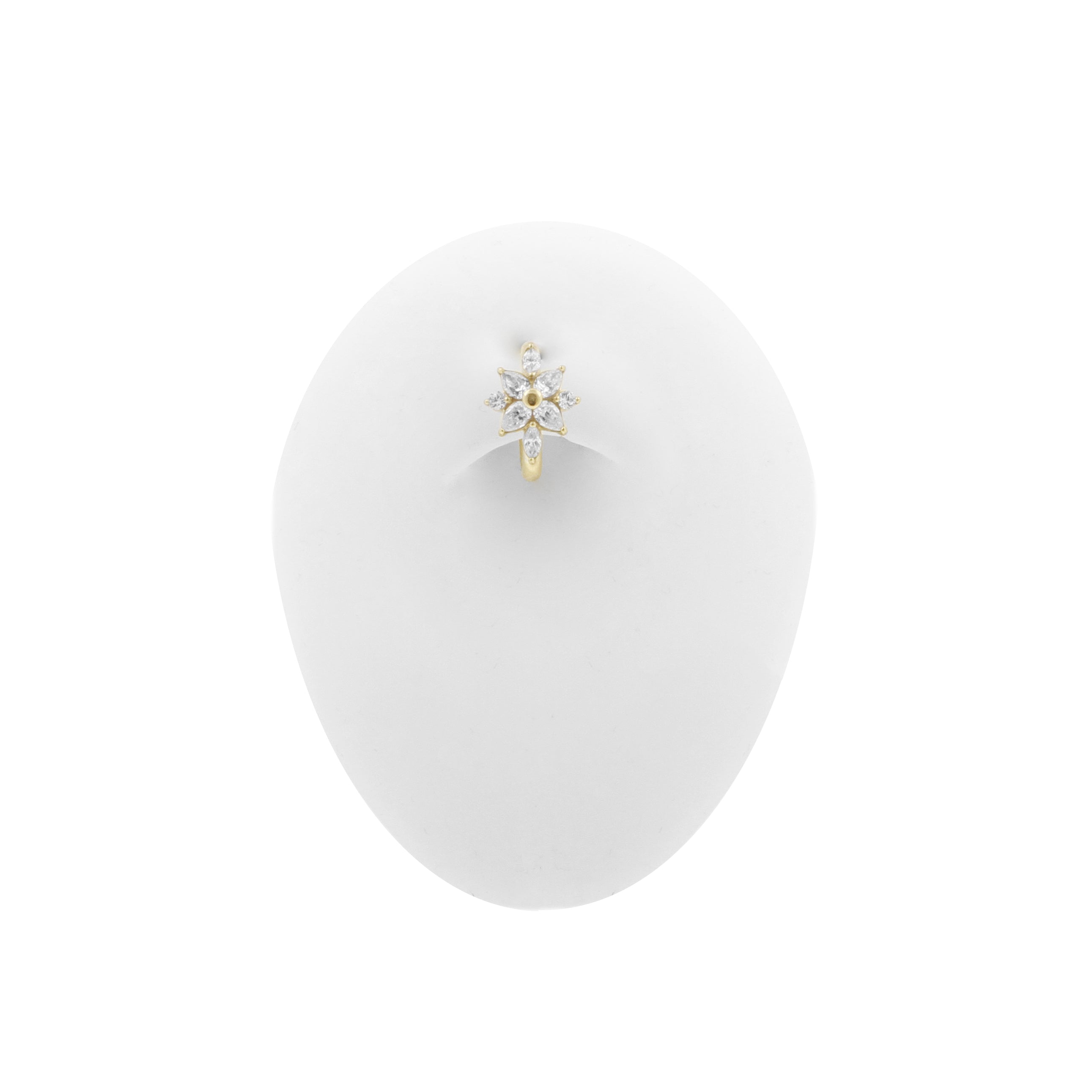 Nickel-Free Stainless Steel Belly Ring Clicker - Zirconia Flower - Gold