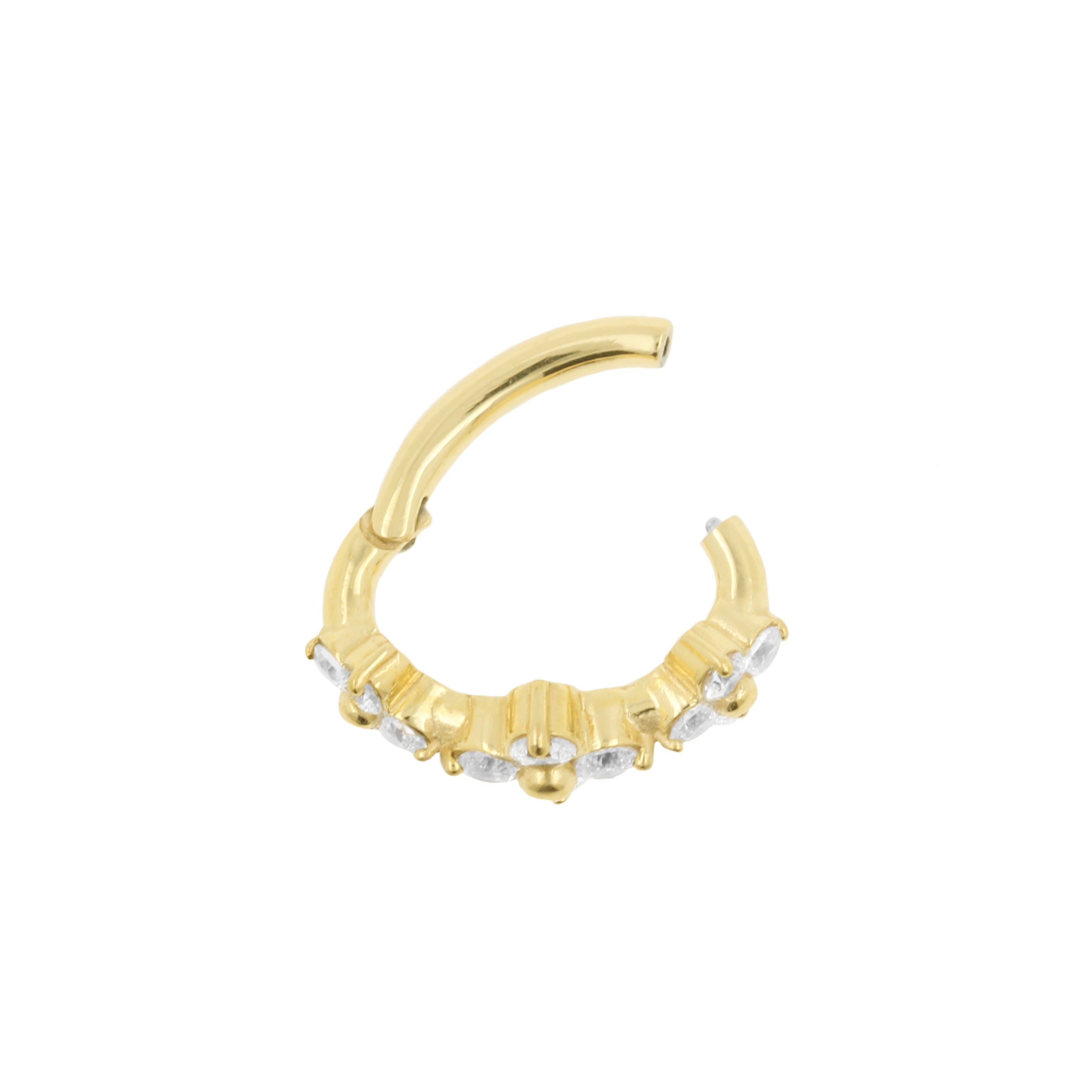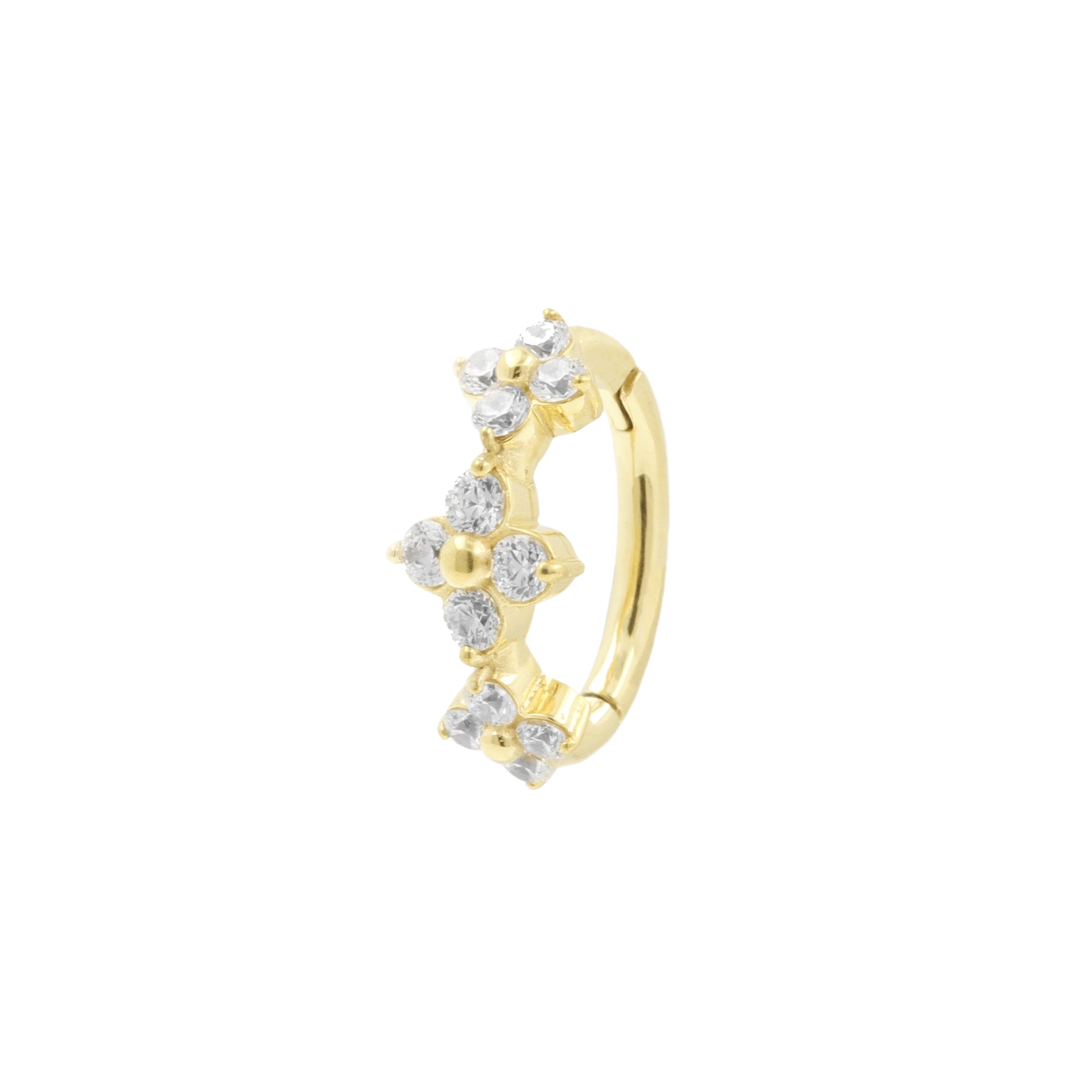 Nickel-Free Stainless Steel Belly Ring Clicker - Zirconia Flowers - Gold