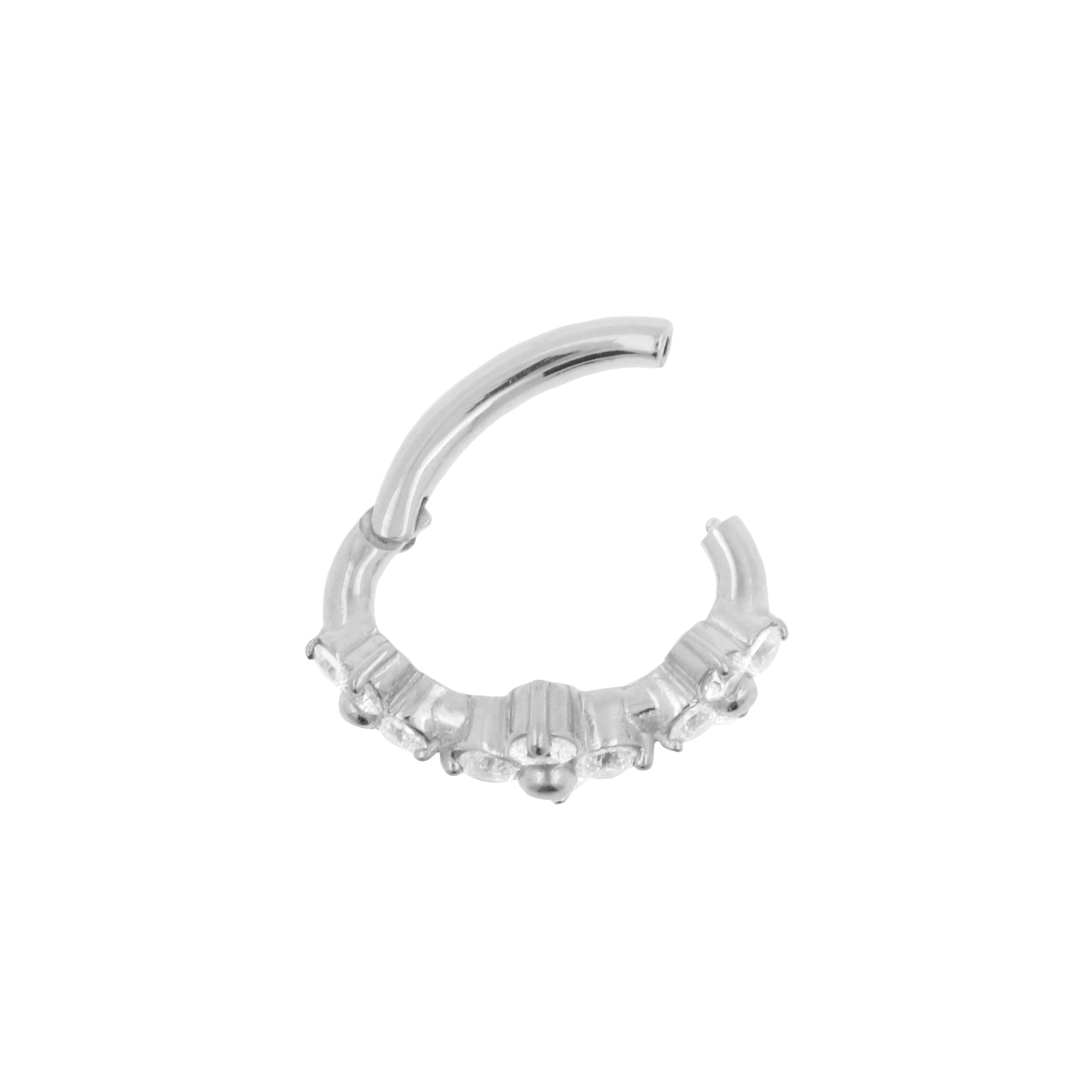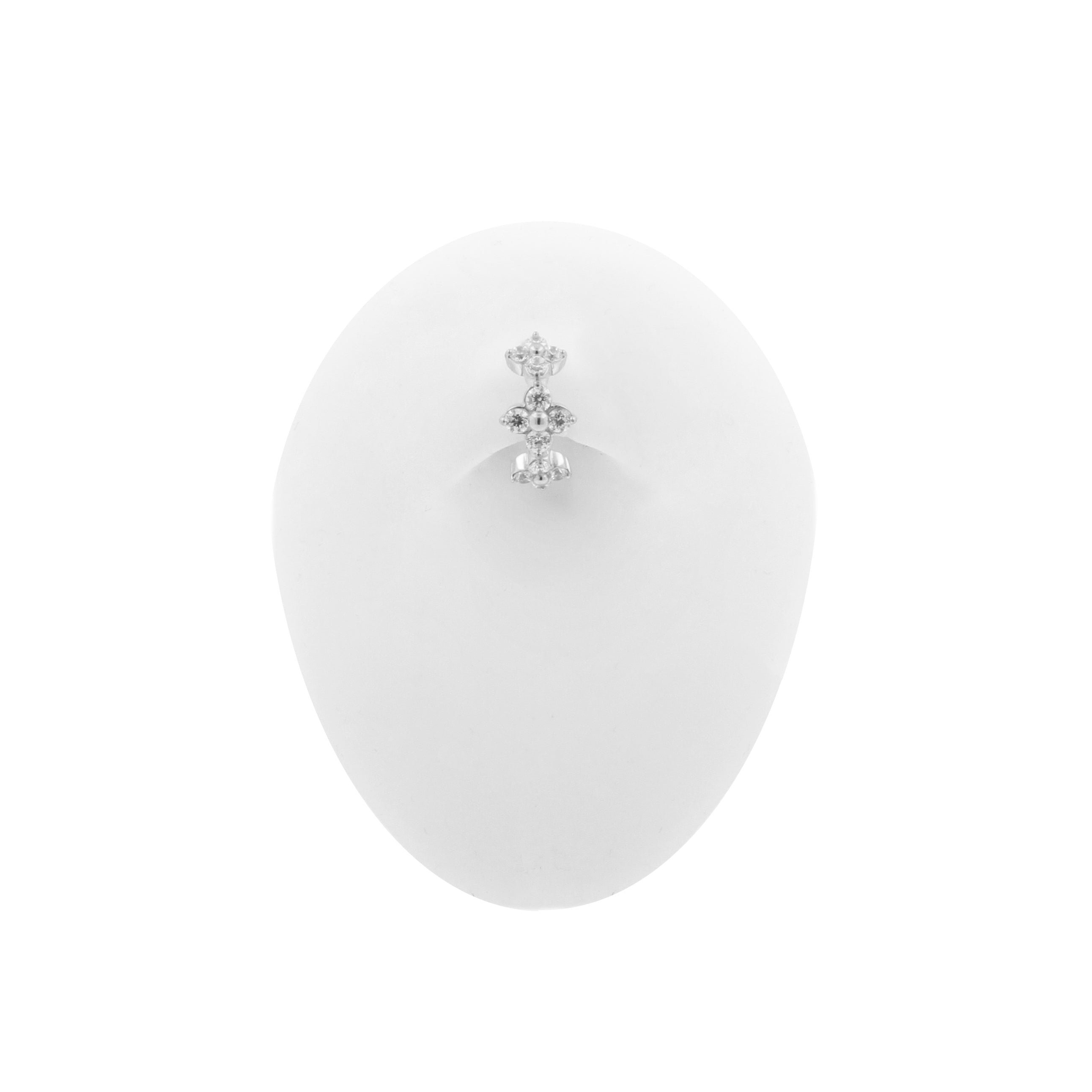 Nickel-Free Stainless Steel Belly Ring Clicker - Zirconia Flowers - Silver