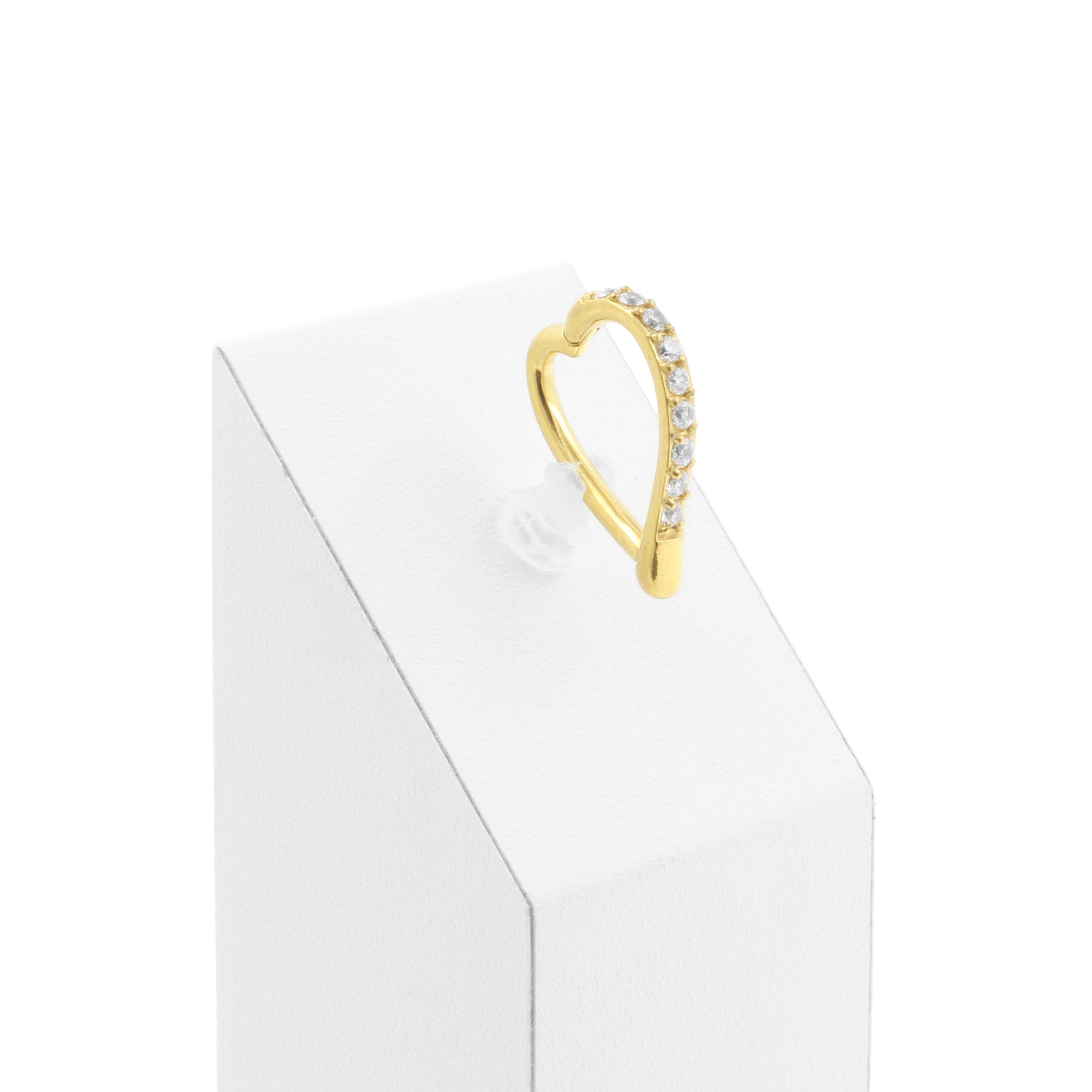 Nickel-Free Stainless Steel Belly Ring Clicker - Zirconia Heart - Silver