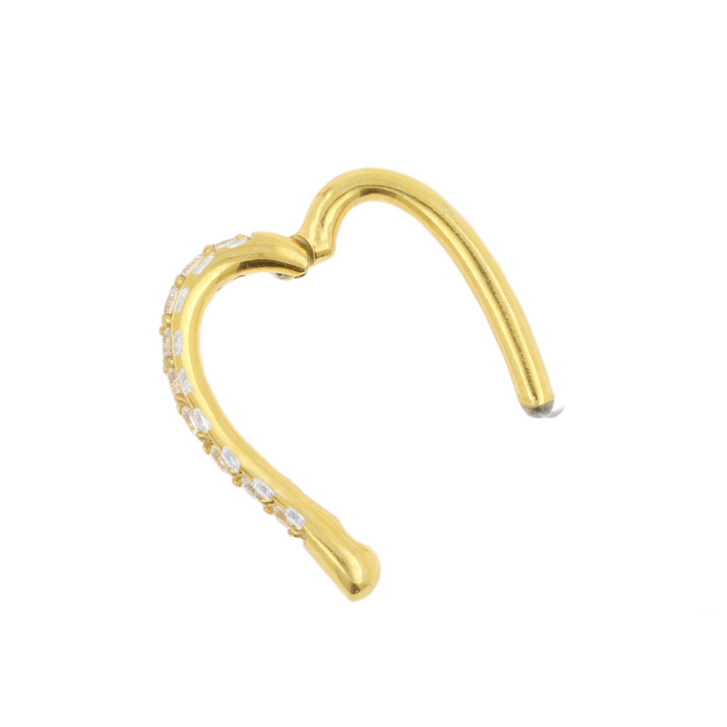 Make your belly ring sparkle with our comfortable belly ring clickers! This lovely belly ring clicker is made of cobalt chromium with a mirror polish. The ring is heart shaped and set with premium zirconia. The easy to use clicking mechanism makes chaning your belly ring jewelry a breeze. Beautiful belly ring jewelry that is an absolute must have for your jewelry collection!