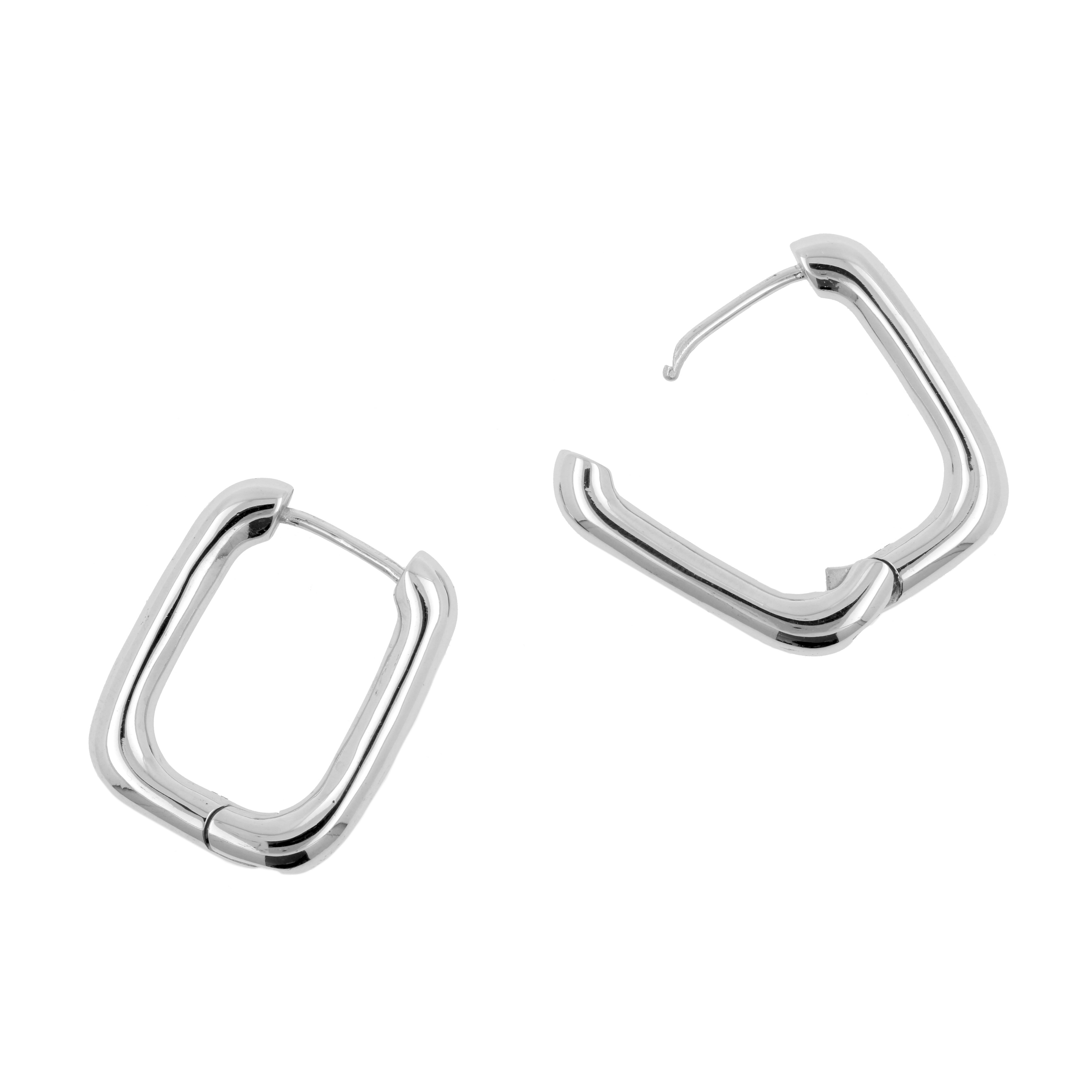 Nickel-Free Stainless Steel Click Hoop Earrings - Squared Dangle Silver