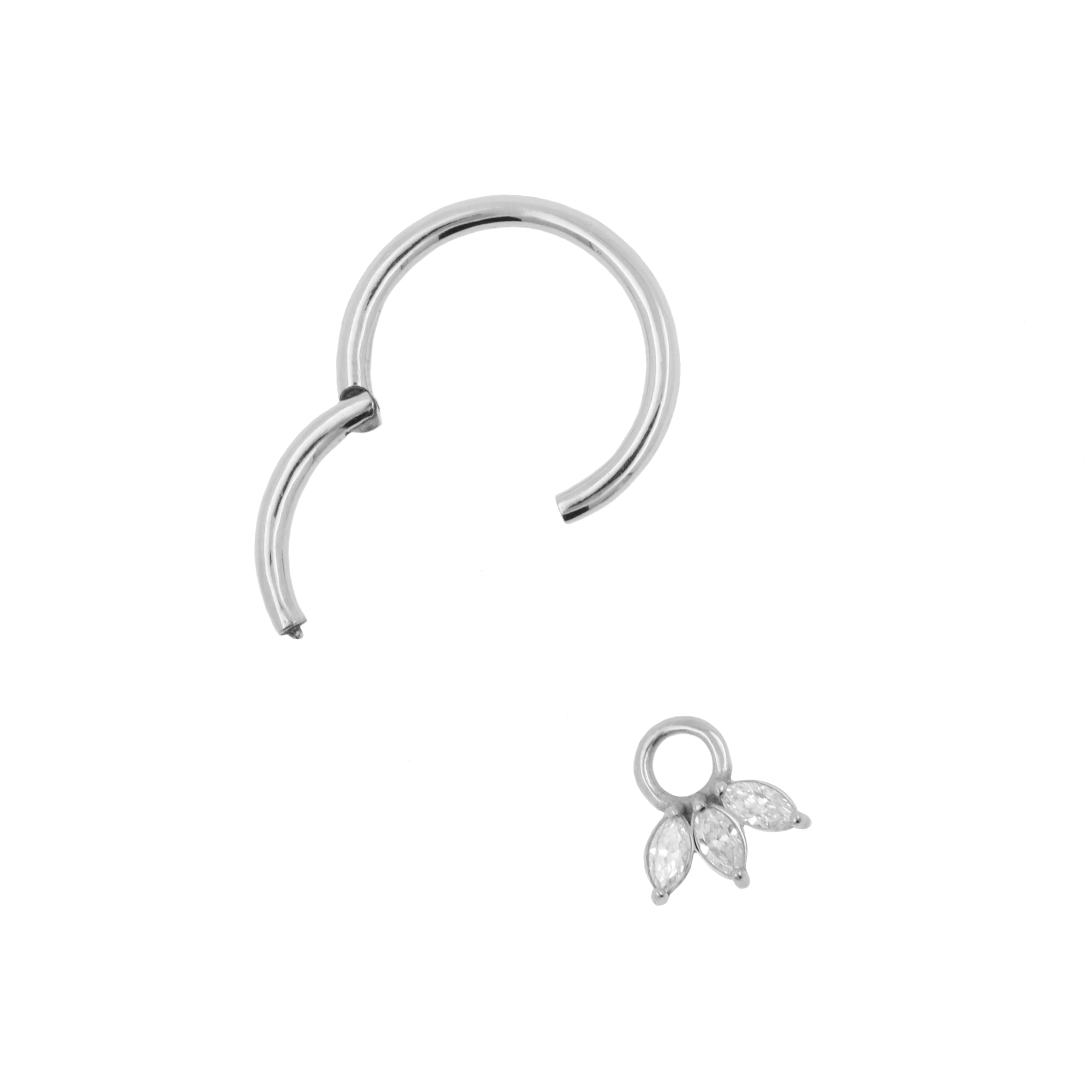 Nickel-Free Stainless Steel Click Ring Charm - Marquise Cluster - Silver