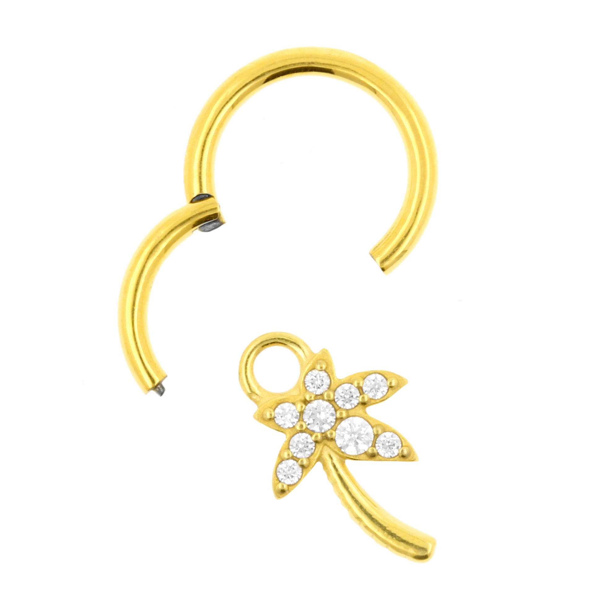 Nickel-Free Stainless Steel Click Ring Charm - Palm Tree Emerald