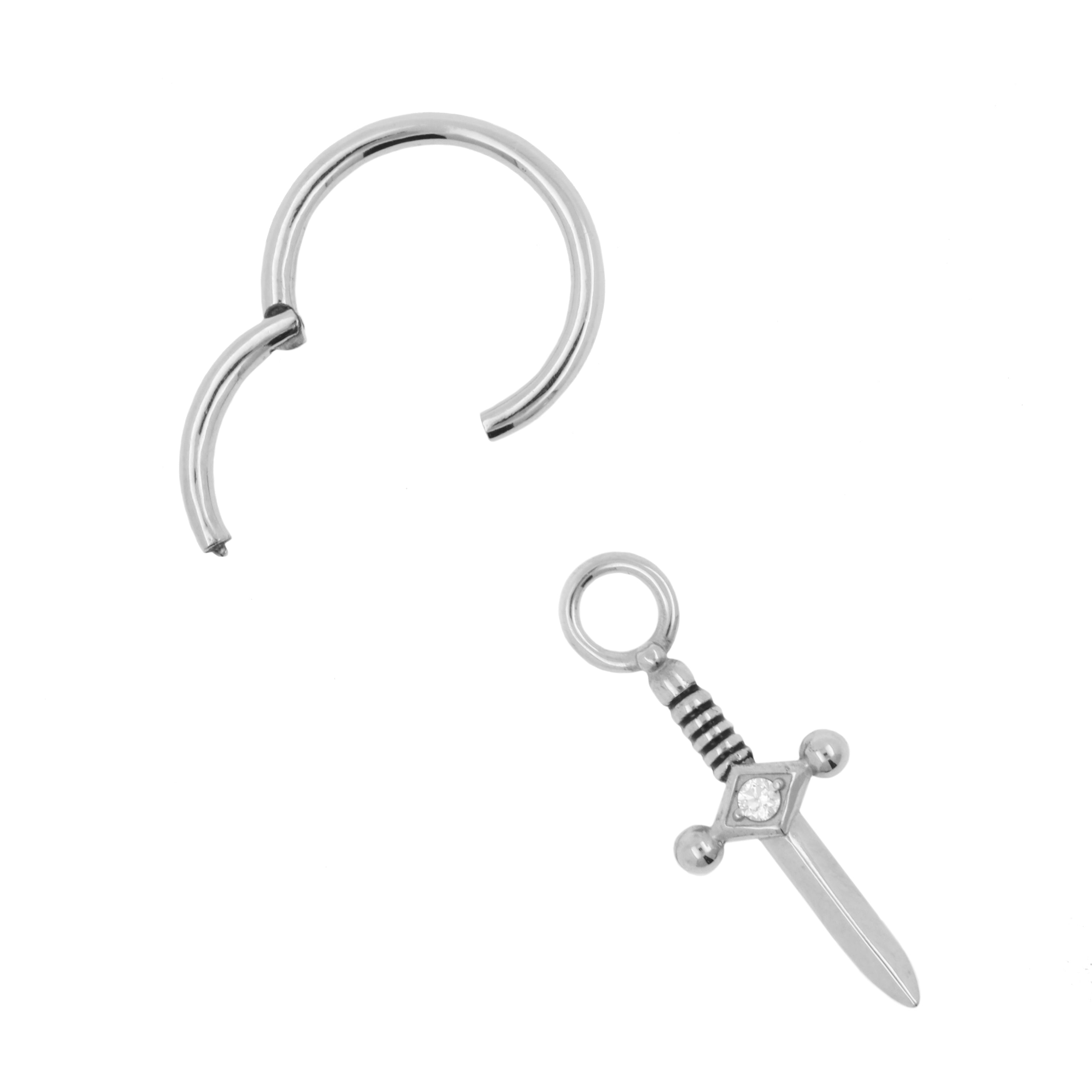 Nickel-Free Stainless Steel Click Ring Charm - Small Dagger - Silver