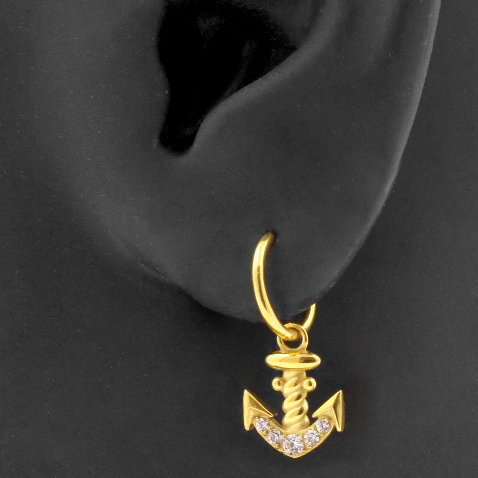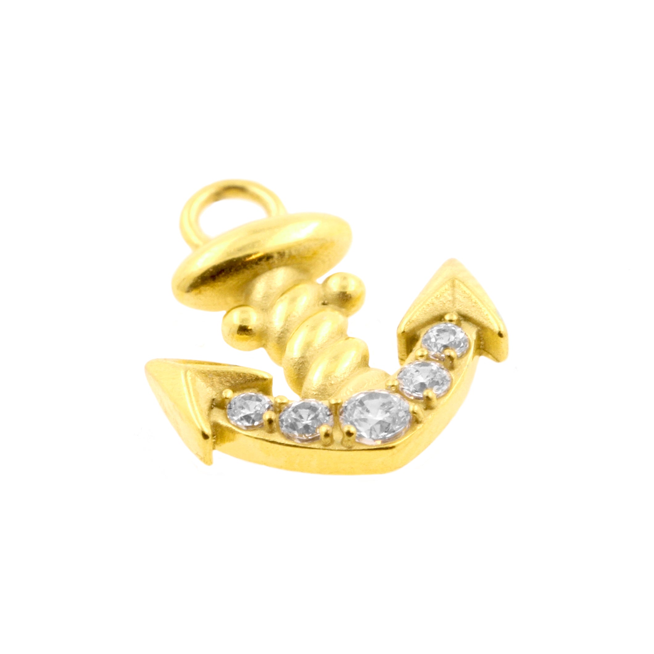 Nickel-Free Stainless Steel Click Ring Charm - Zirconia Anchor Gold