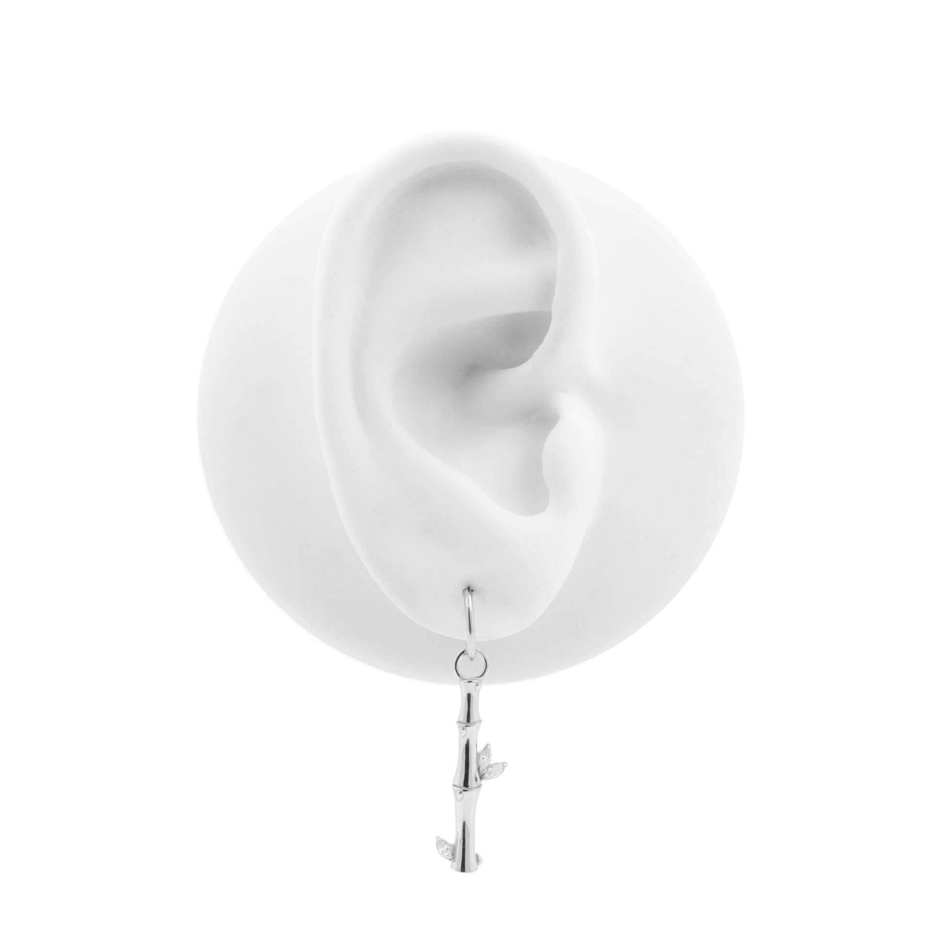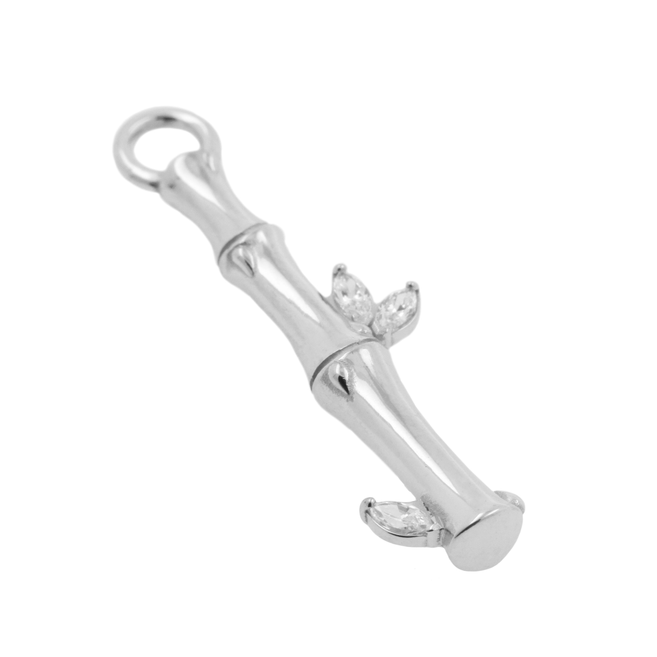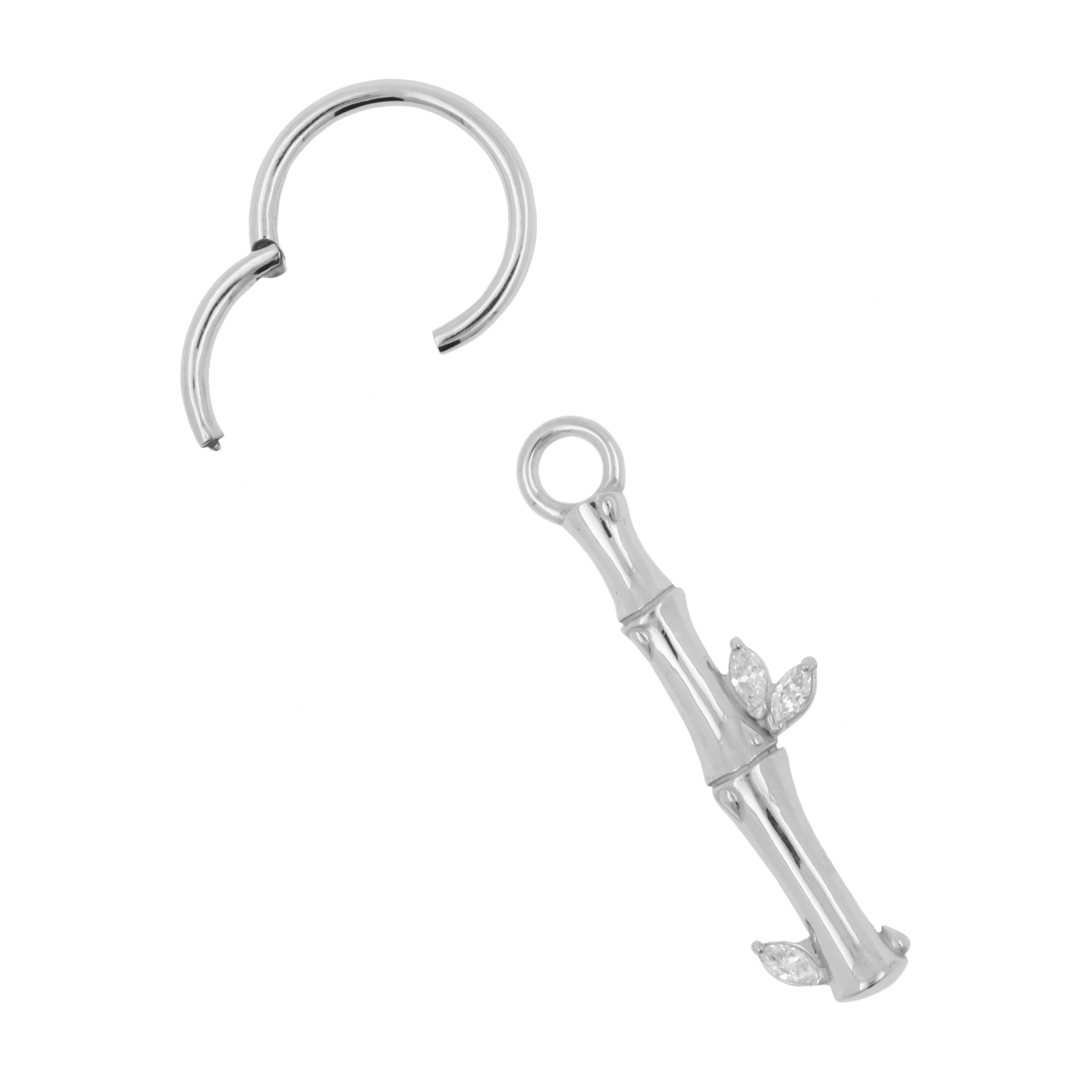 Nickel-Free Stainless Steel Click Ring Charm - Zirconia Bamboo - Silver