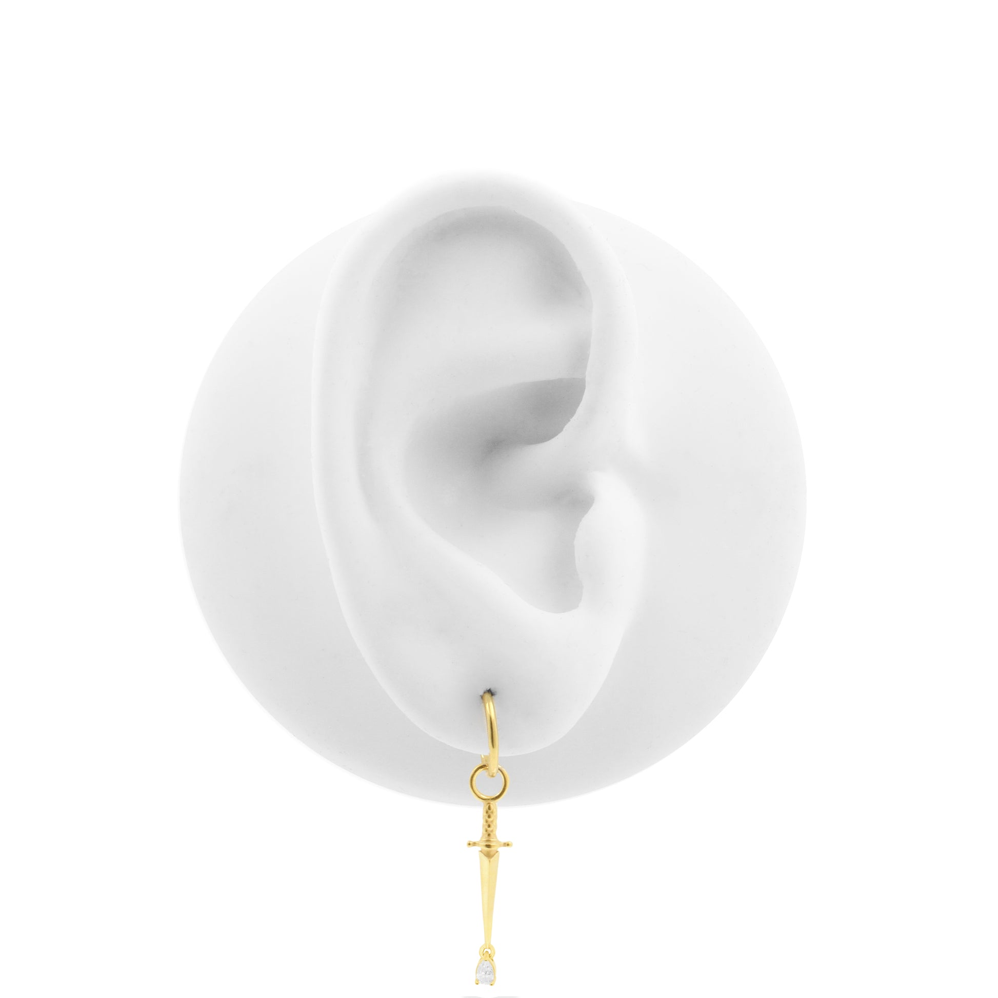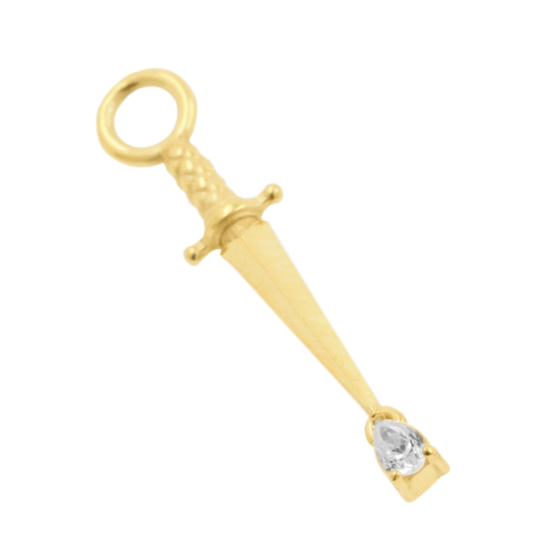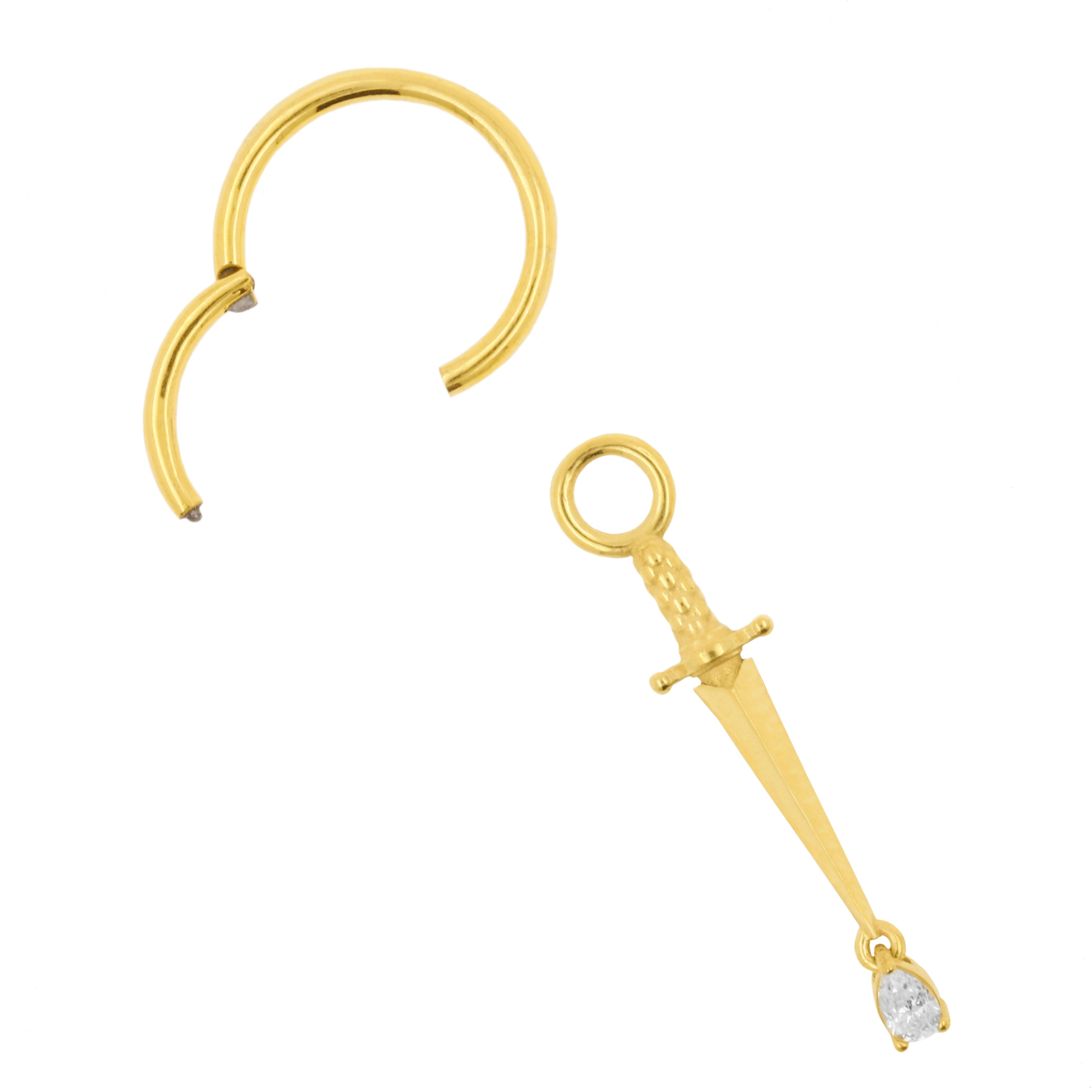 Nickel-Free Stainless Steel Click Ring Charm - Zirconia Dagger - Gold