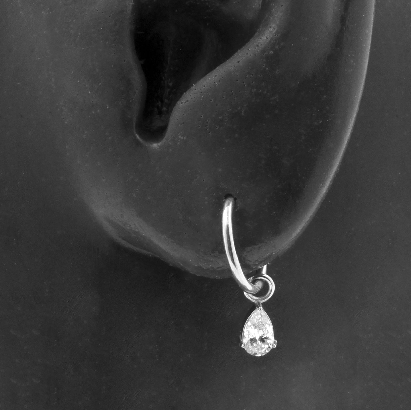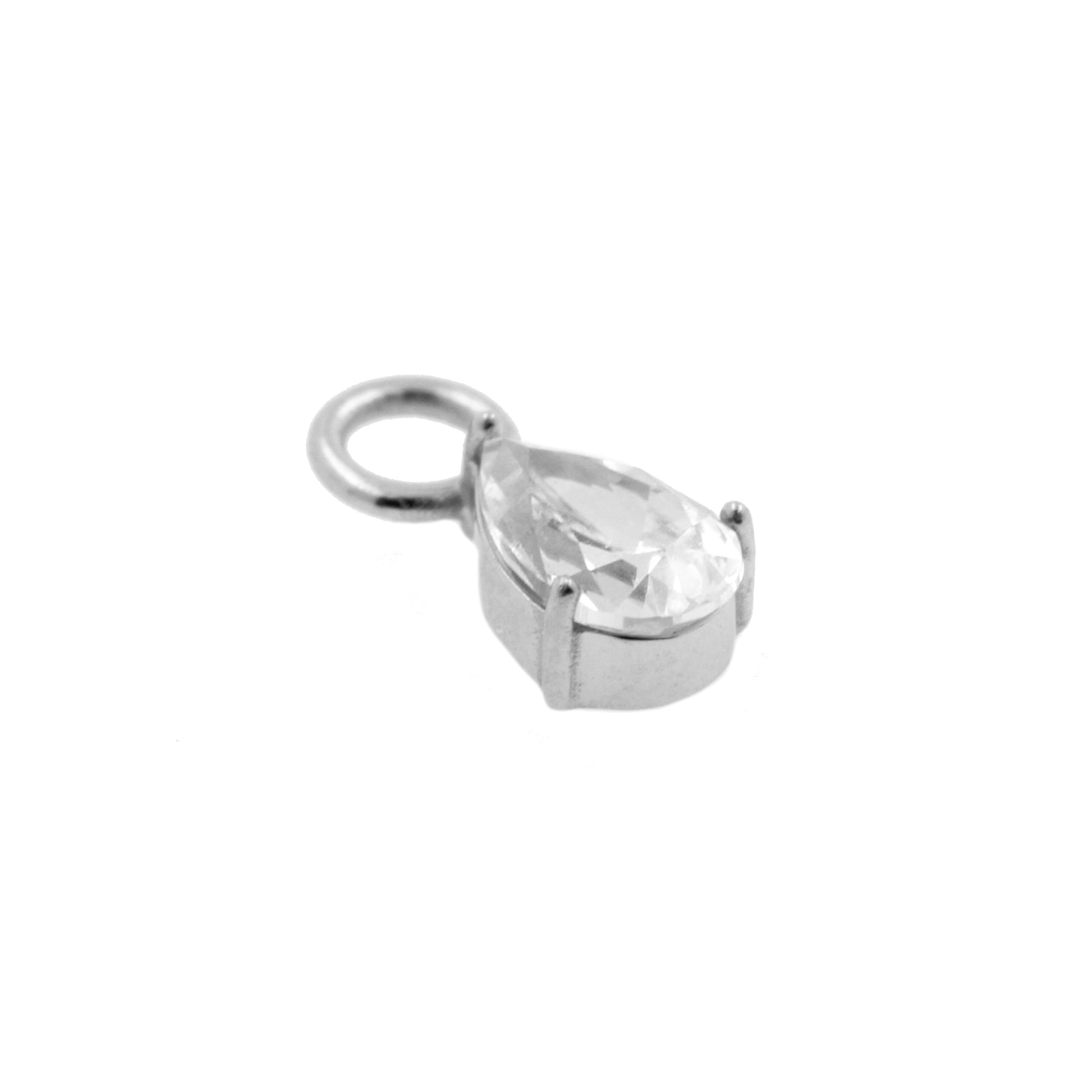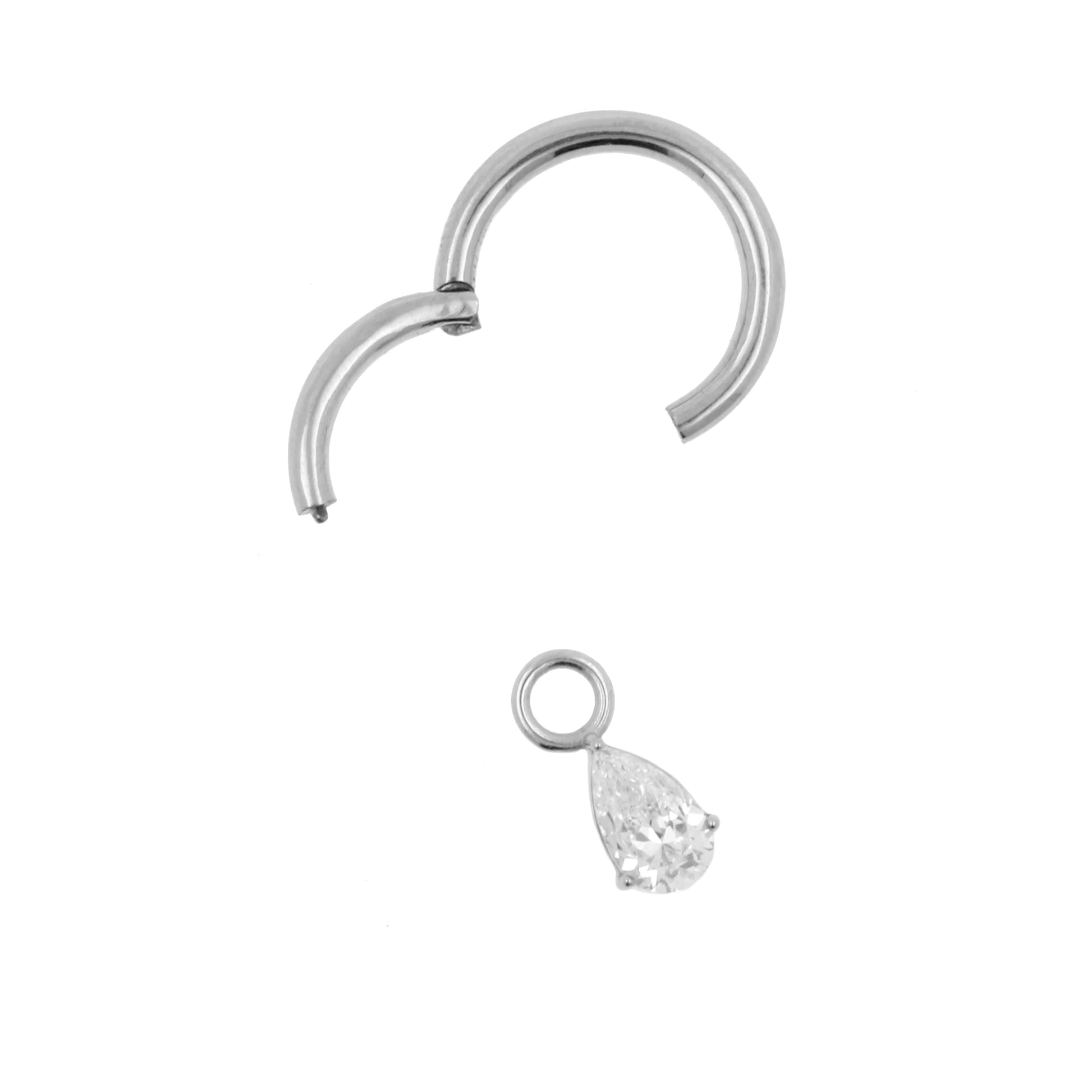 Nickel-Free Stainless Steel Click Ring Charm - Zirconia Droplet Silver