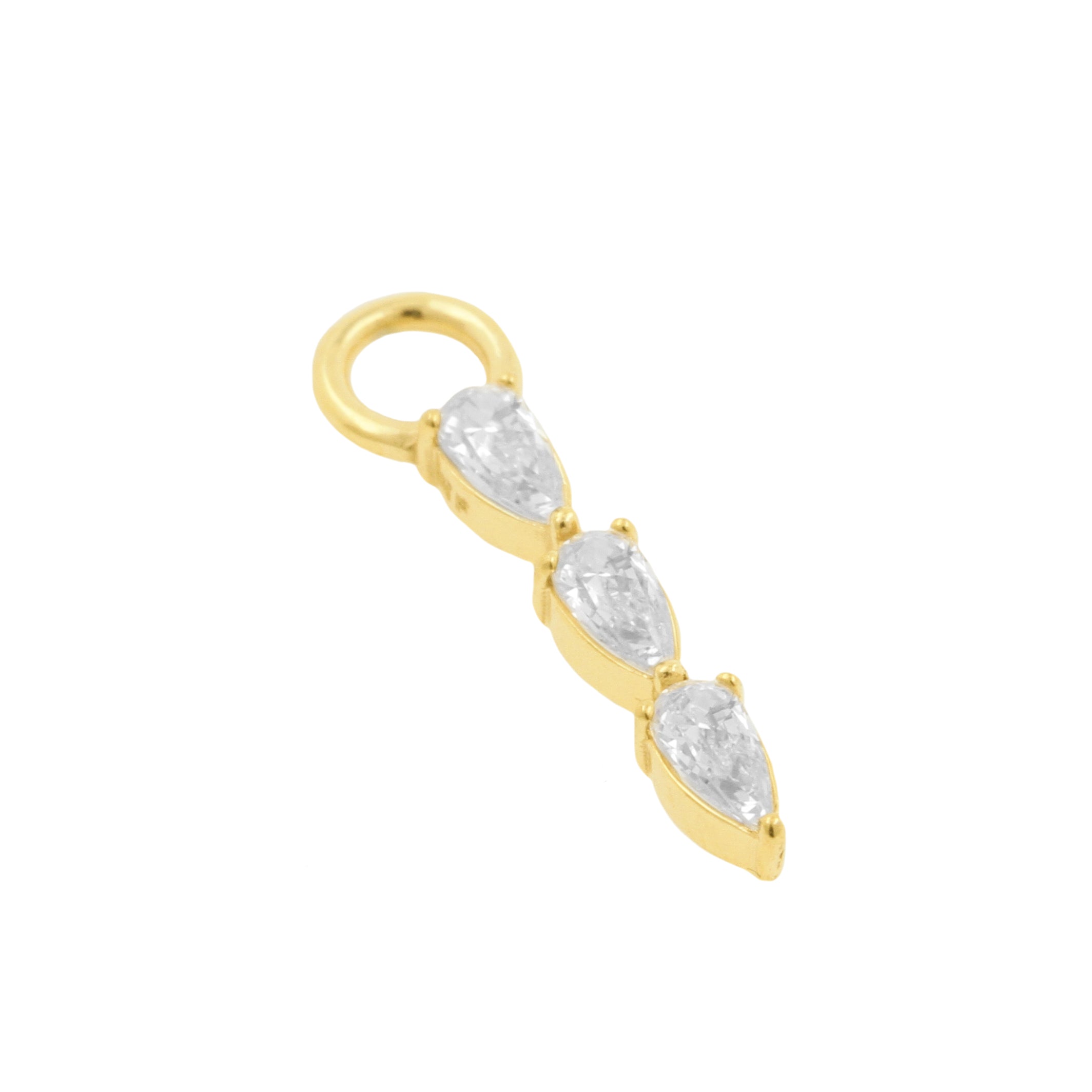 Nickel-Free Stainless Steel Click Ring Charm - Zirconia Drops - Gold