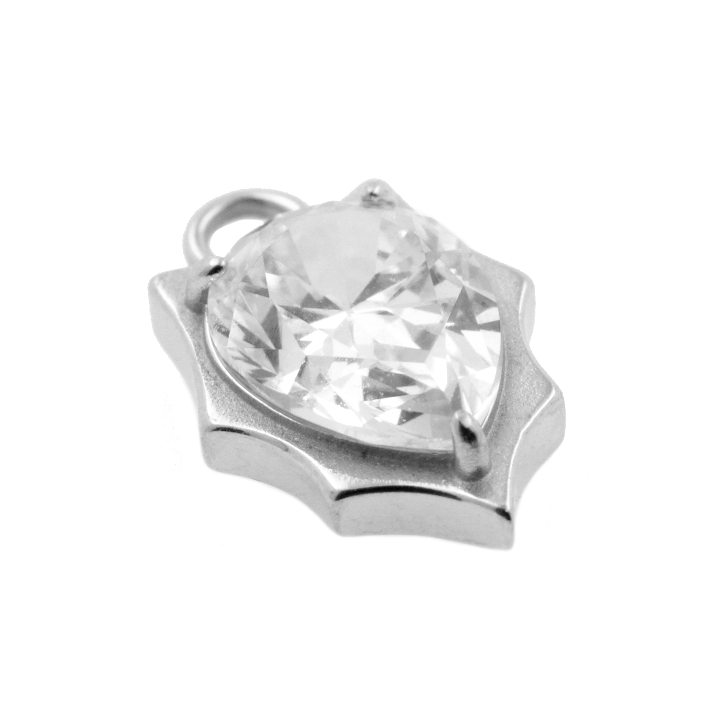 Nickel-Free Stainless Steel Click Ring Charm - Zirconia Leaf Silver