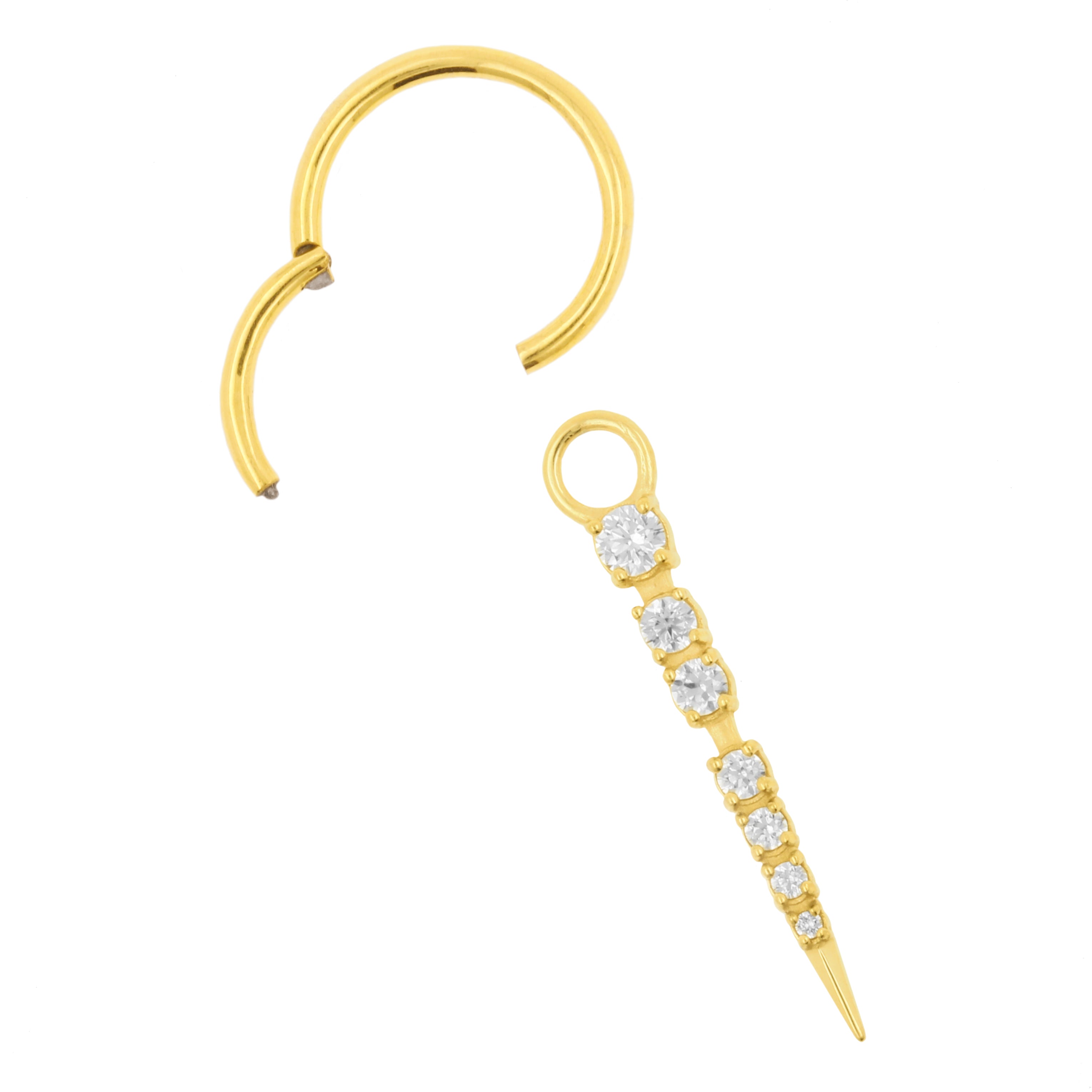 Nickel-Free Stainless Steel Click Ring Charm - Zirconia Pendulum - Gold