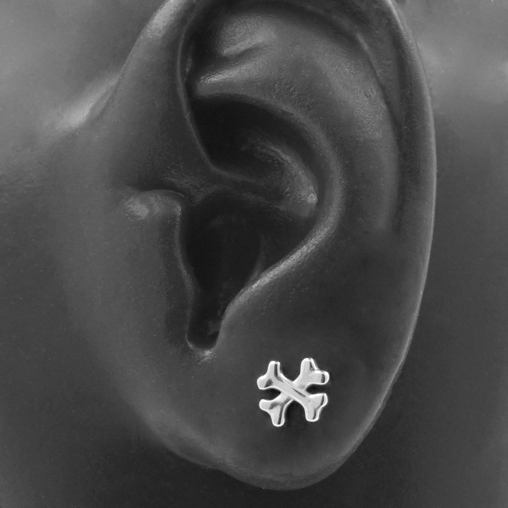 Nickel-Free Stainless Steel Crossbones Attachment - Silver instantly adds a stylish touch to your piercing. This Threadless Top is made of Nickel-Free Stainless Steel. The threadless system allows you to easily combine this top with all our bars, which we call Threadless Base, for a perfect fit and ultimate comfort.