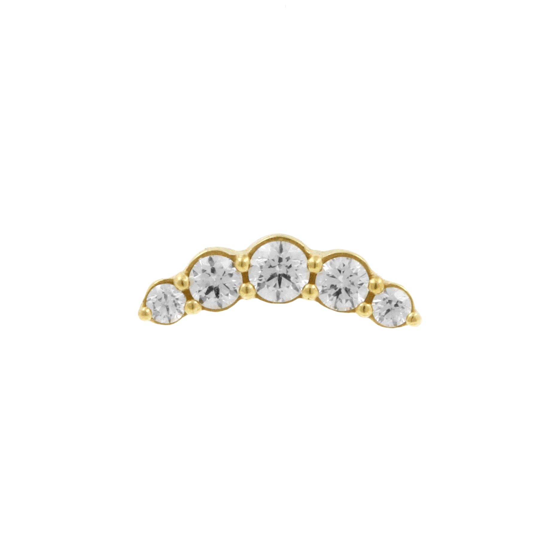 Nickel-Free Stainless Steel Curve Attachment - Gold instantly adds a stylish touch to your piercing. This Threadless Top is made of Nickel-Free Stainless Steel with a cubic zirconia in Clear. The threadless system allows you to easily combine this top with all our bars, which we call Threadless Base, for a perfect fit and ultimate comfort.