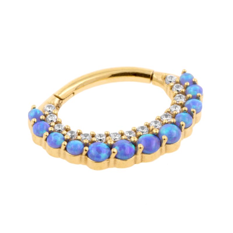 Nickel-Free Stainless Steel Daith Clicker - Opal And Zirconia Blue Opal