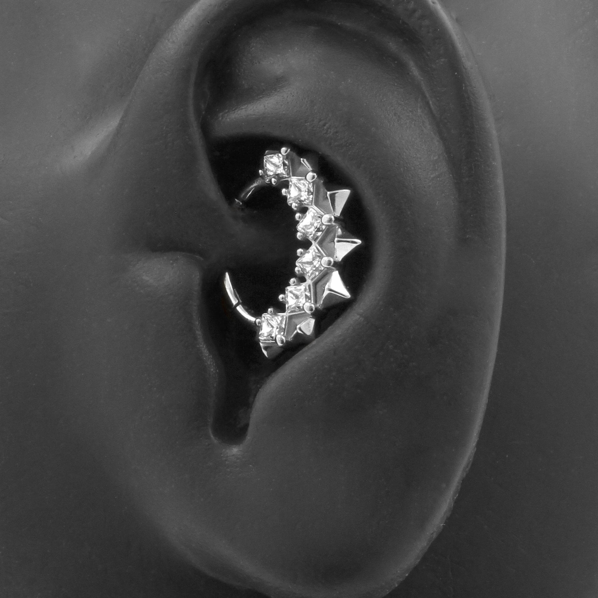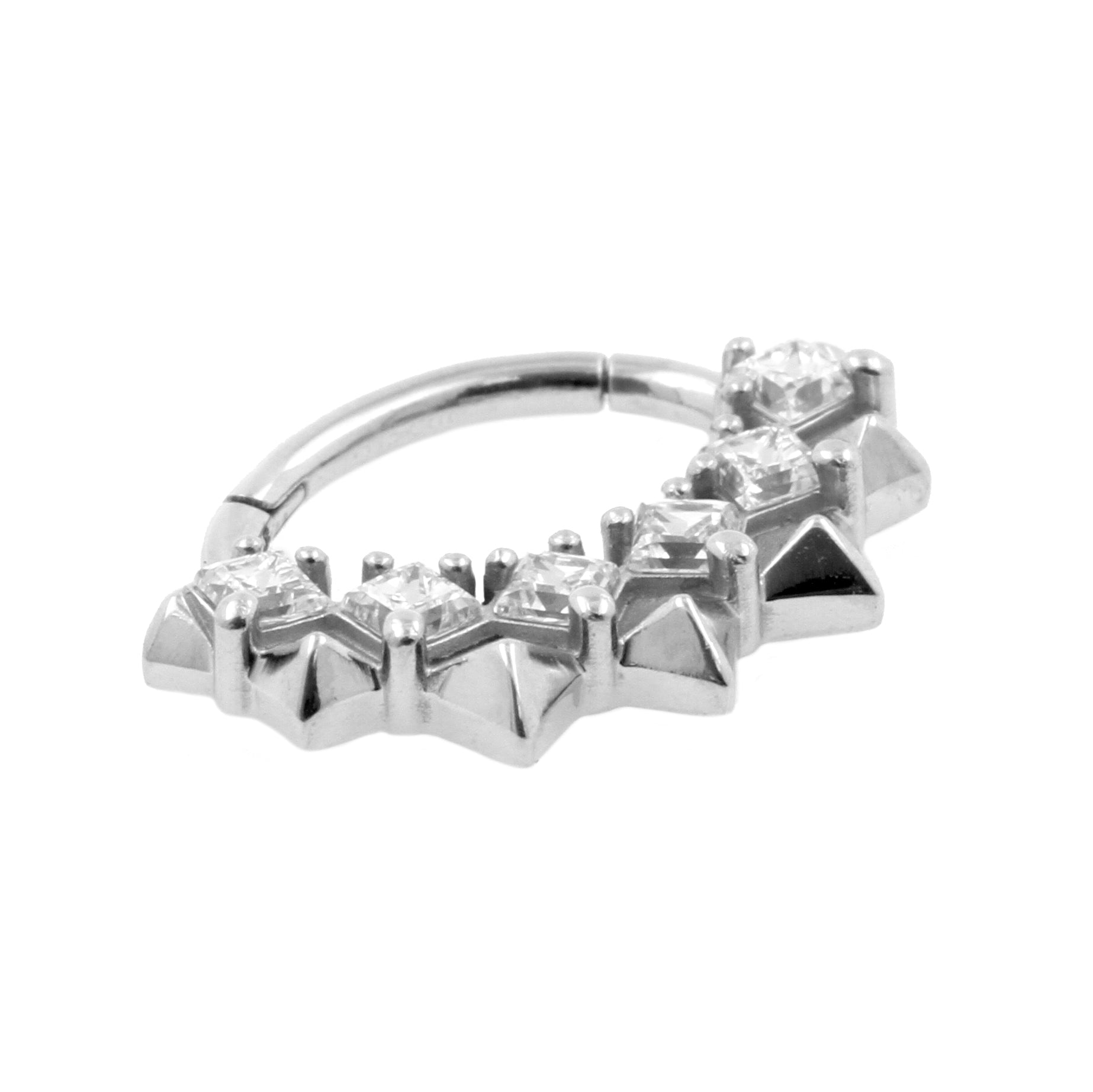 Nickel-Free Stainless Steel Daith Clicker - Zirconia Square Studs Silver