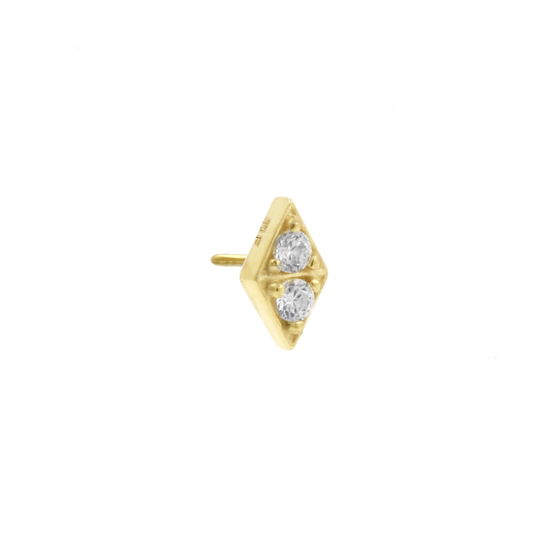 Nickel-Free Stainless Steel Diamond Attachment - Gold instantly adds a stylish touch to your piercing. This Threadless Top is made of Nickel-Free Stainless Steel with a cubic zirconia in Clear. The threadless system allows you to easily combine this top with all our bars, which we call Threadless Base, for a perfect fit and ultimate comfort.