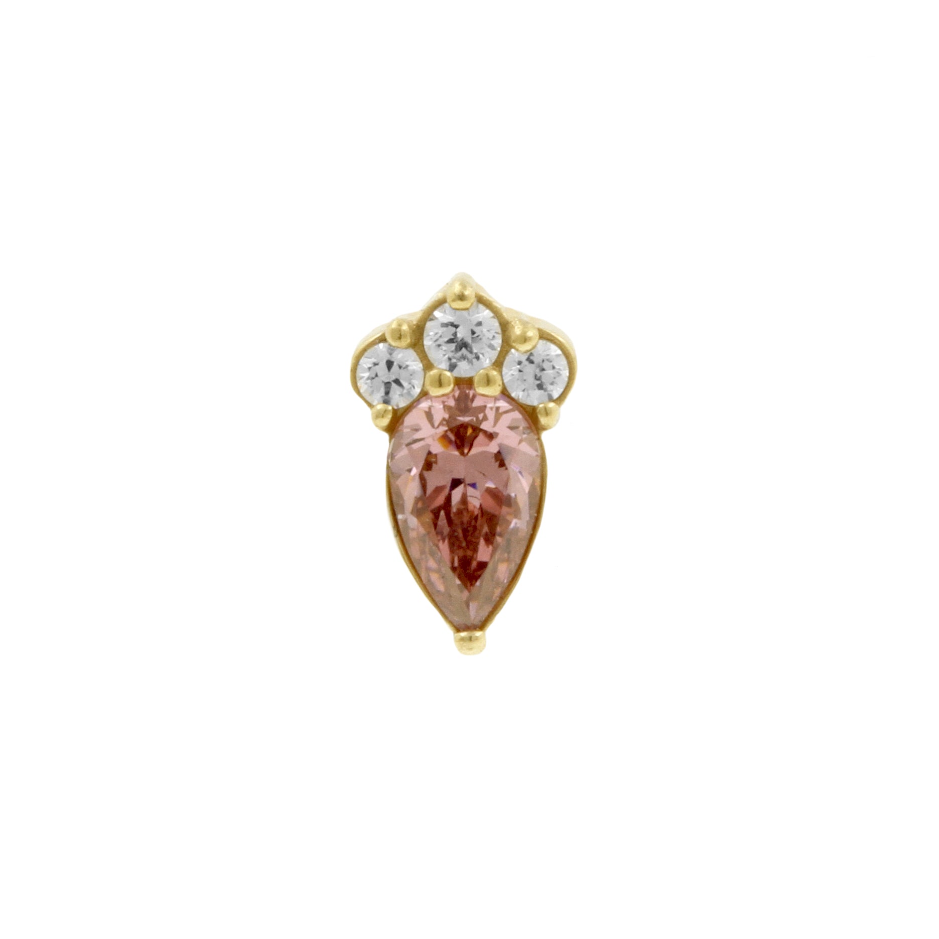 Nickel-Free Stainless Steel Droplet Cluster Attachment - Rhodolite instantly adds a stylish touch to your piercing. This Threadless Top is made of Nickel-Free Stainless Steel with a cubic zirconia in Rhodolite. The threadless system allows you to easily combine this top with all our bars, which we call Threadless Base, for a perfect fit and ultimate comfort.