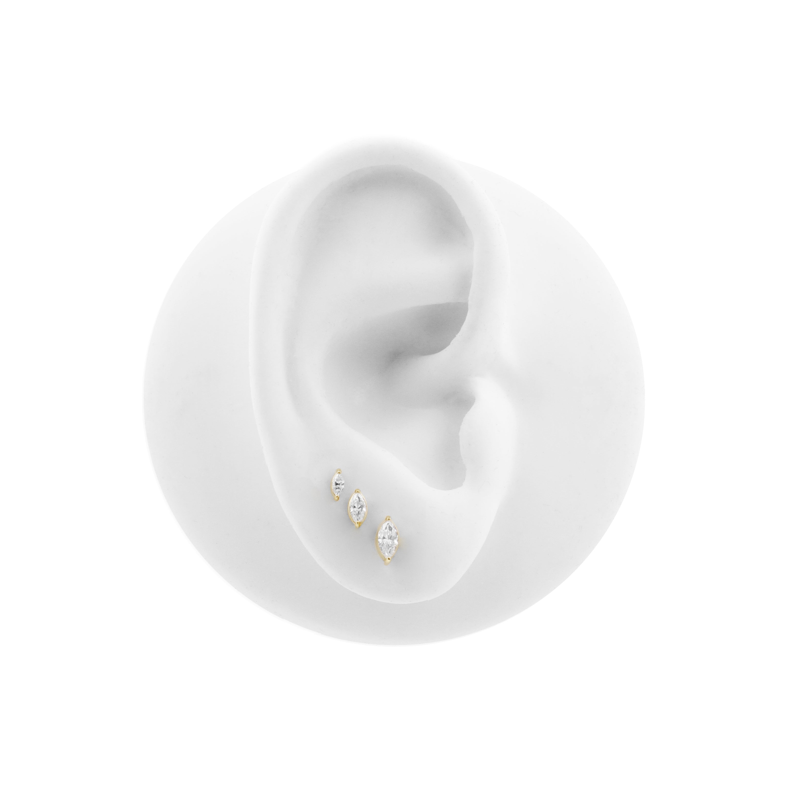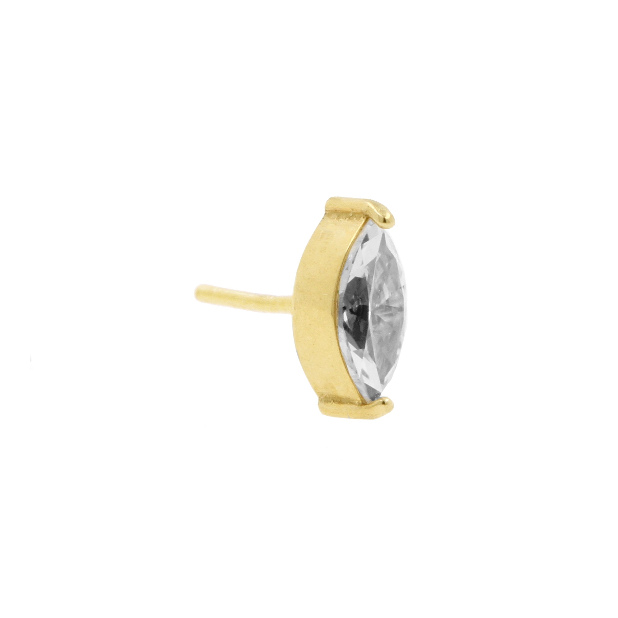 Nickel-Free Stainless Steel Marquise Attachment - Gold instantly adds a stylish touch to your piercing. This Threadless Top is made of Nickel-Free Stainless Steel with a cubic zirconia in Clear. The threadless system allows you to easily combine this top with all our bars, which we call Threadless Base, for a perfect fit and ultimate comfort.