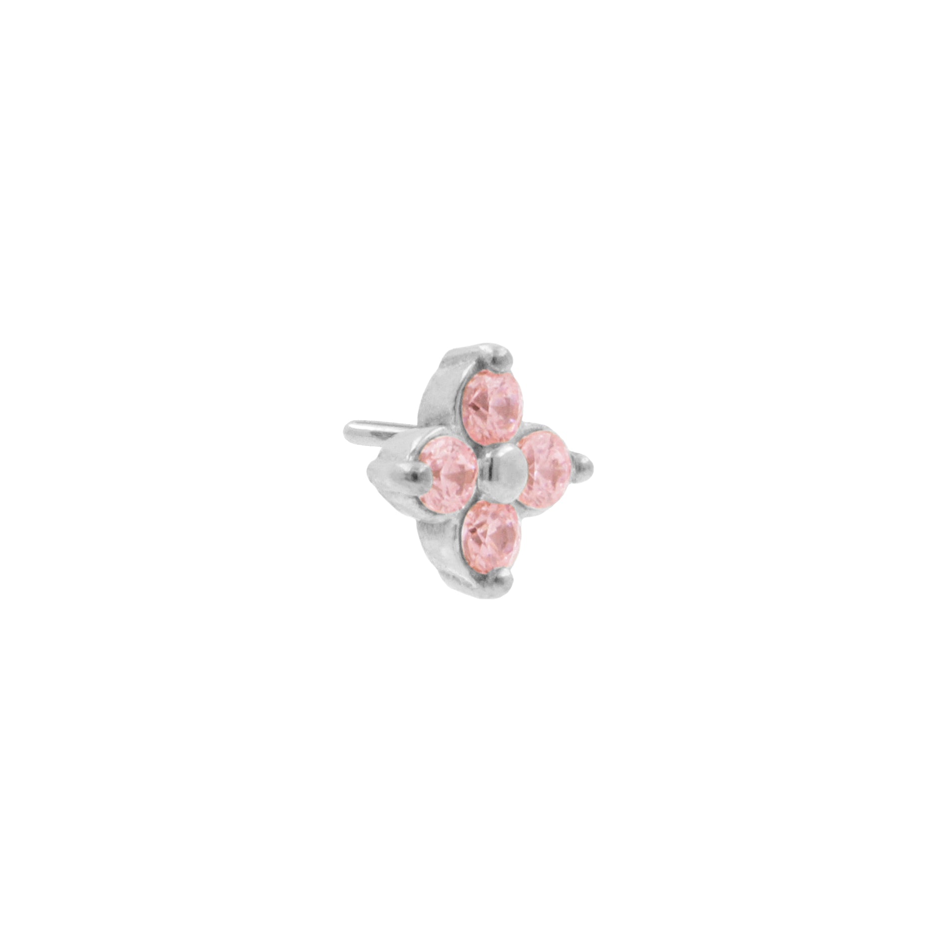 - Four pink cubic zirconia stones in a Quatrefoil design