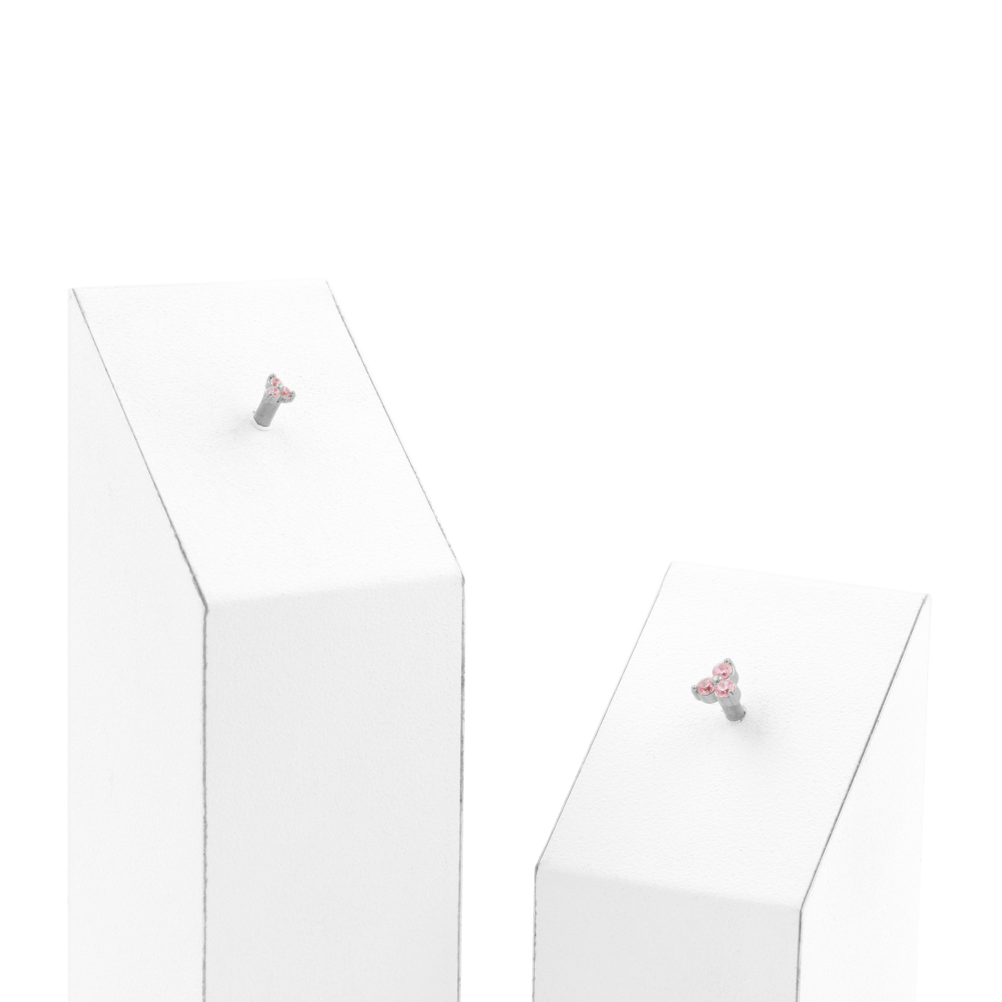 Subtle, radiant and versatile. This Trinity Threadless Top by Devilheart pairs three pink zirconia stones with nickel‑free steel in the color of white gold, making it easy to pair with white‑gold jewelry. Timeless and easy to style in any ear stack.