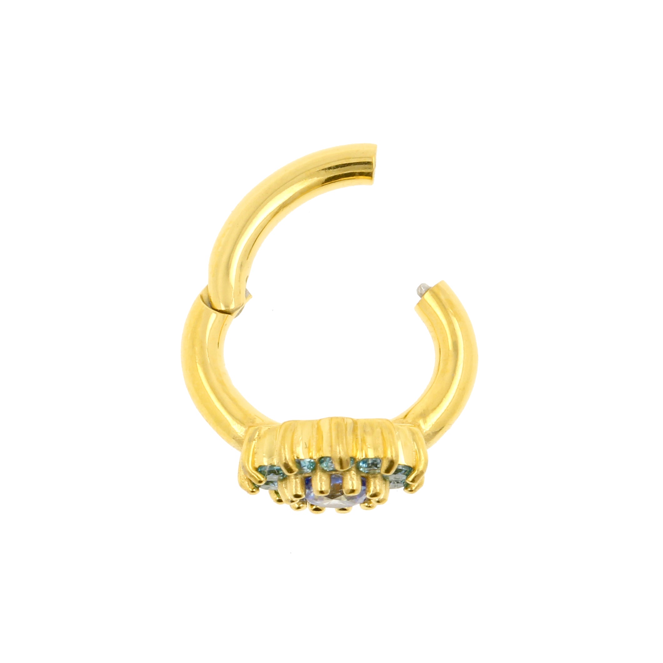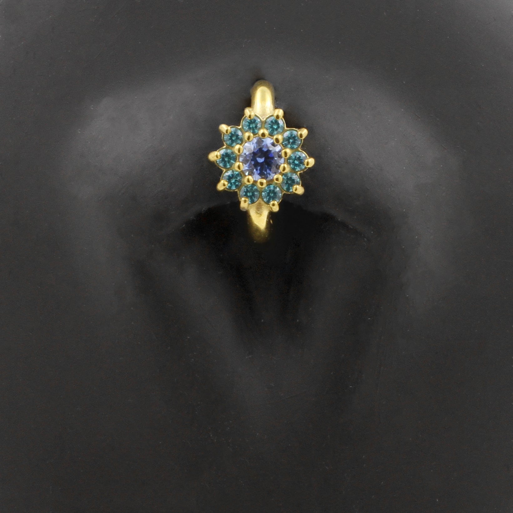 Nickel-Free Stainless Steel Zirconia Belly Ring Clicker - Flower Blue / Mint Green