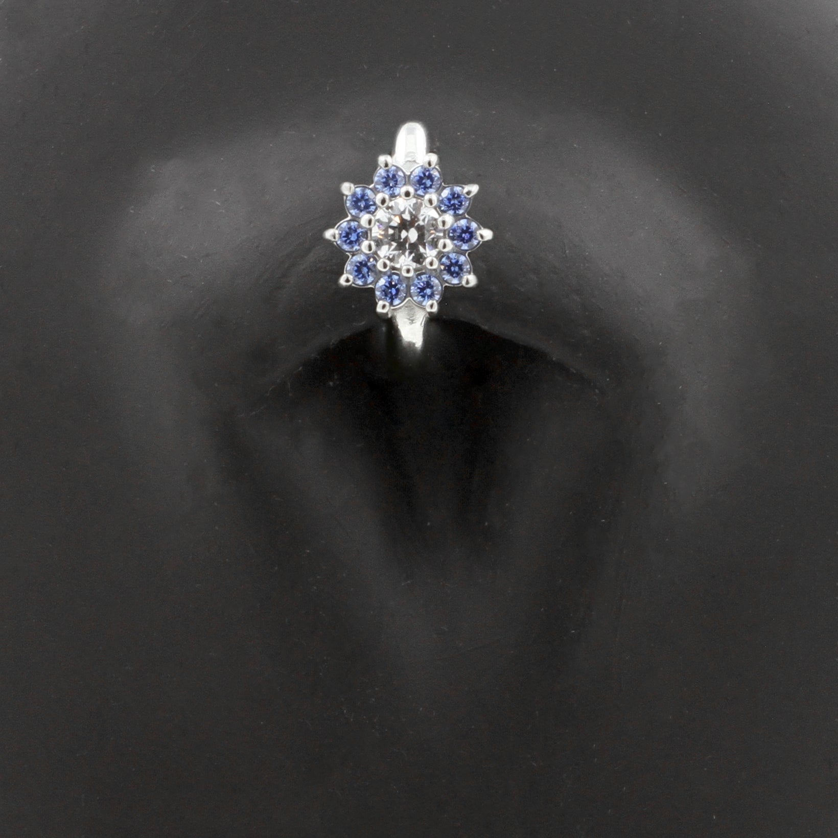 Nickel-Free Stainless Steel Zirconia Belly Ring Clicker - Flower Clear / Blue
