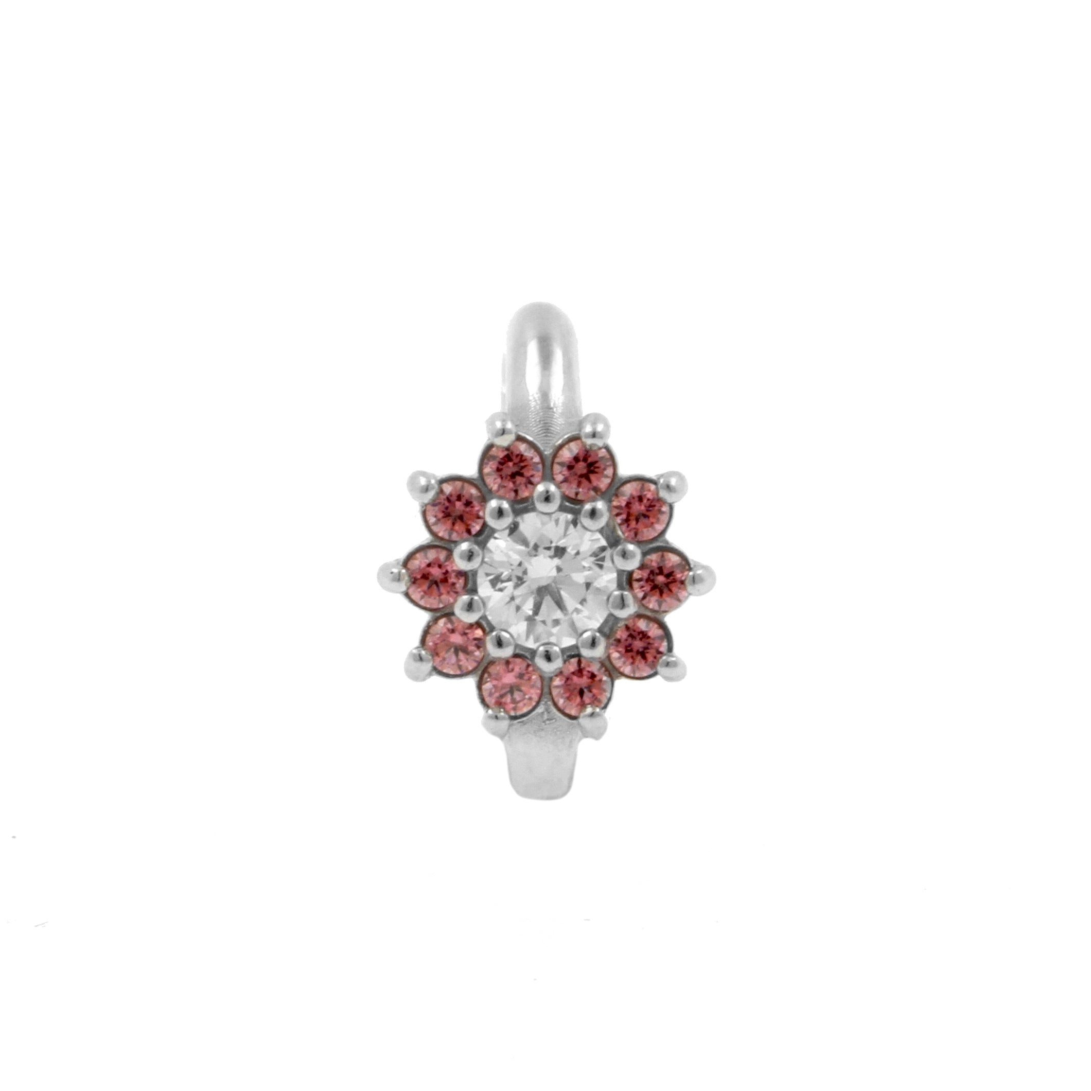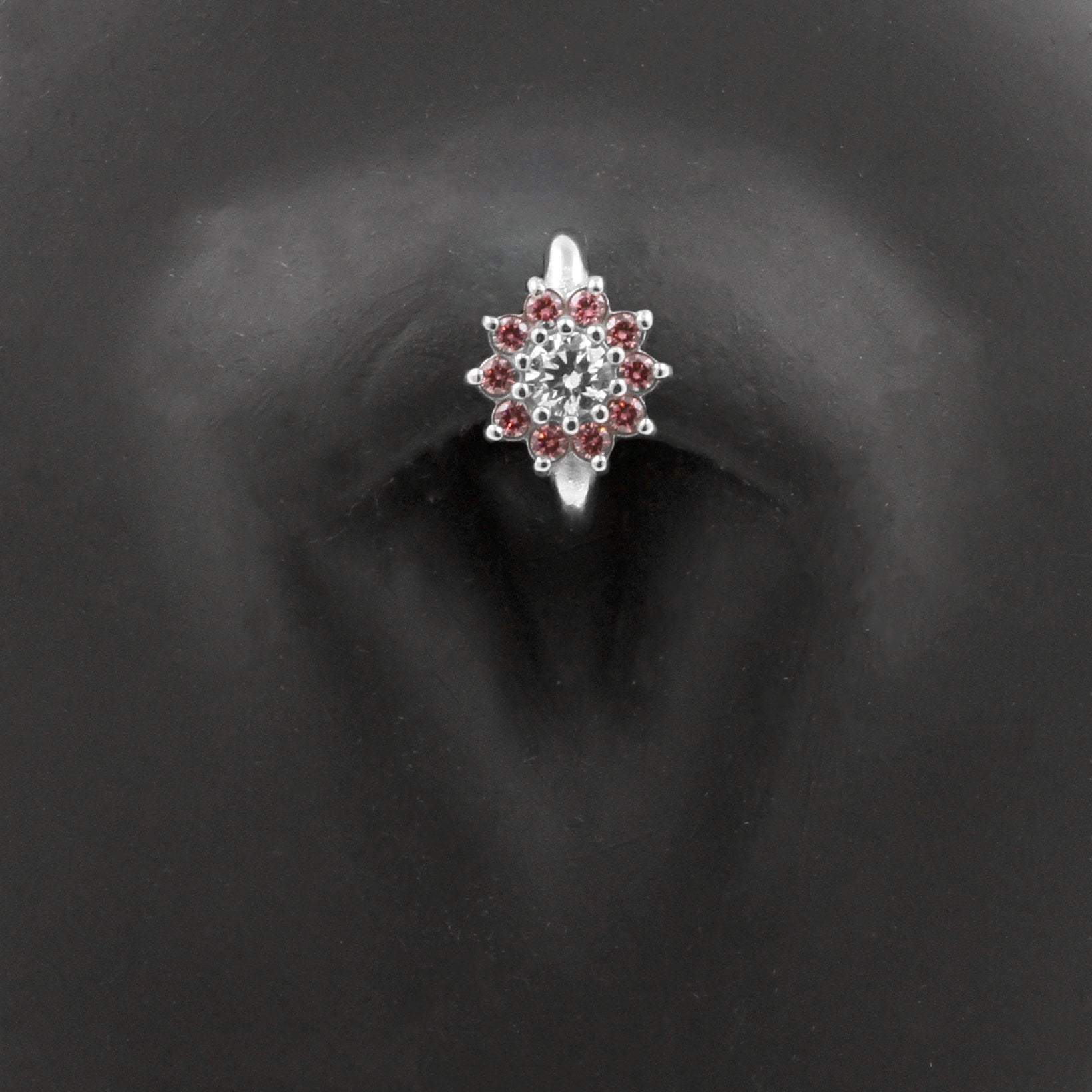 Nickel-Free Stainless Steel Zirconia Belly Ring Clicker - Flower Clear / Pink