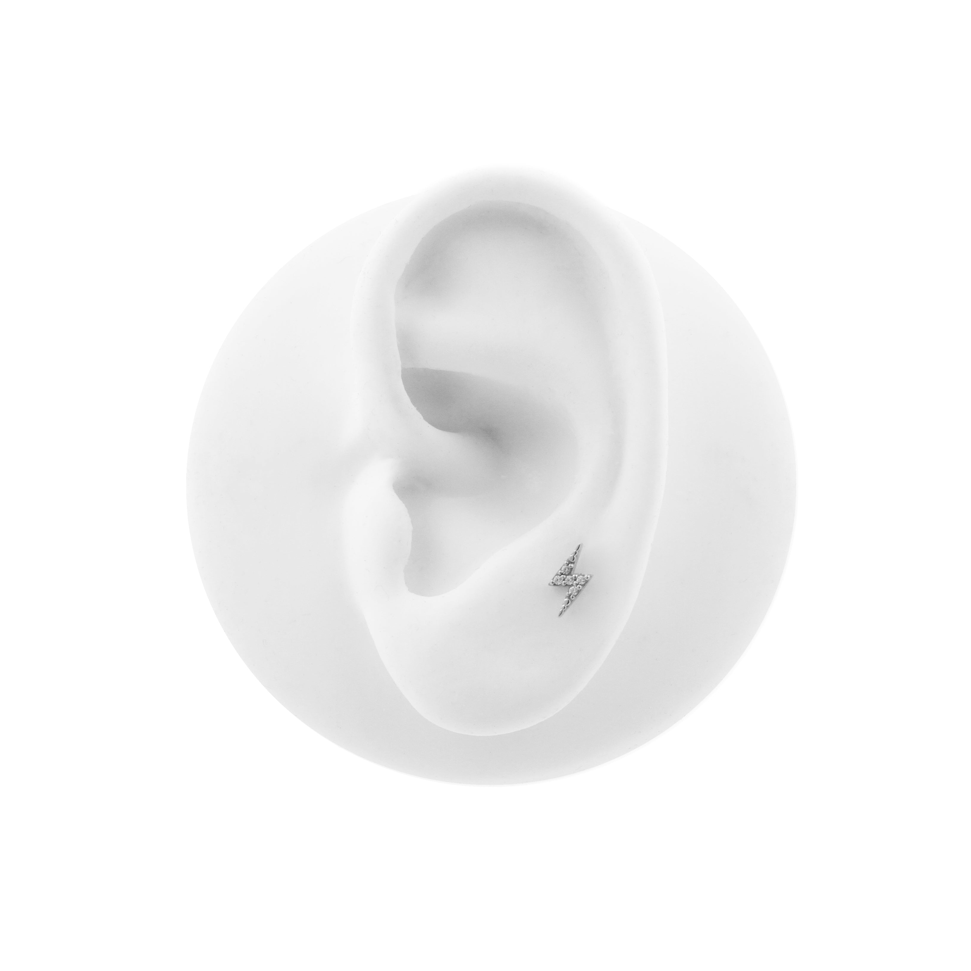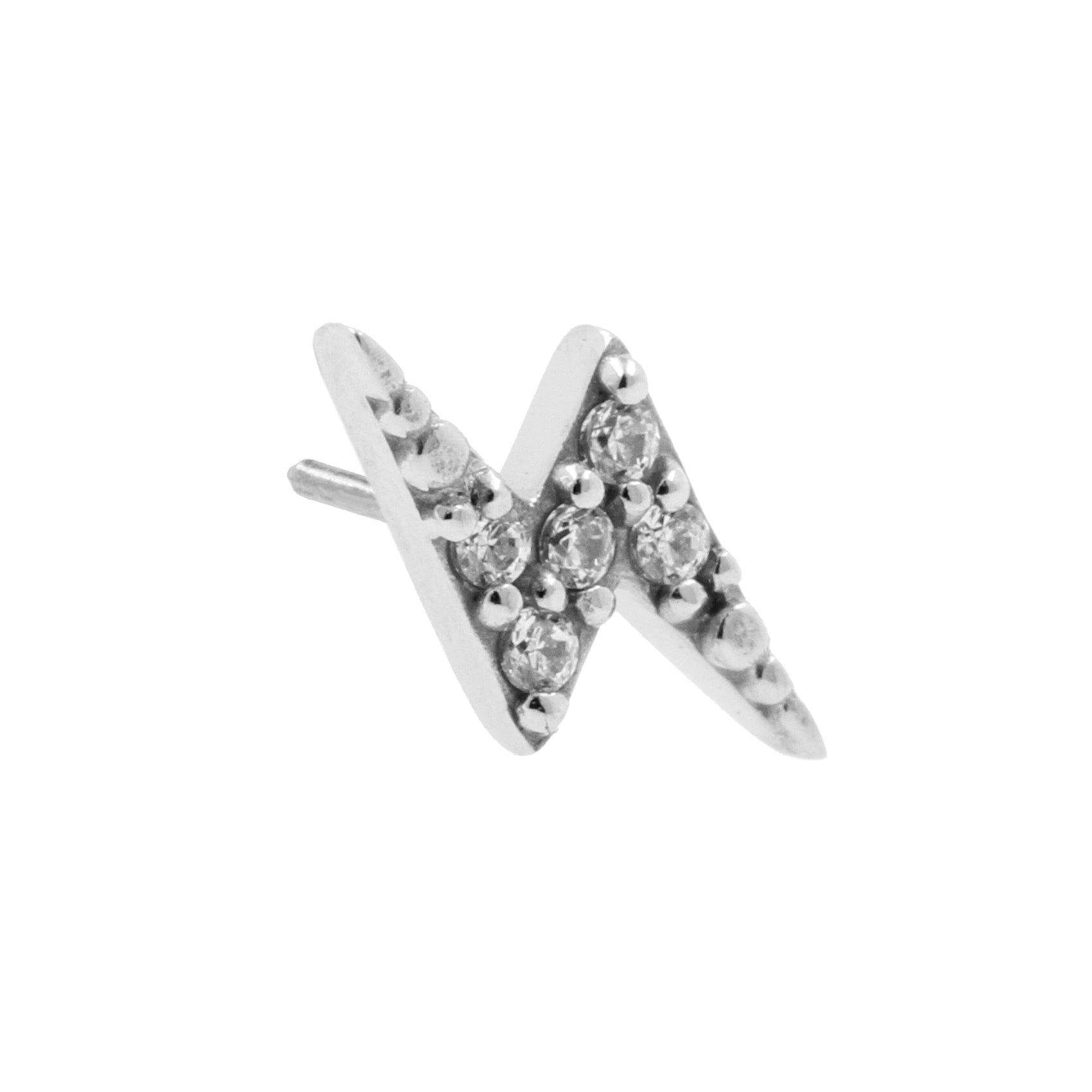 Nickel-Free Stainless Steel Zirconia Flash Left Silver instantly adds a stylish touch to your piercing. This Threadless Top is made of Nickel-Free Stainless Steel. The threadless system allows you to easily combine this top with all our bars, which we call Threadless Base, for a perfect fit and ultimate comfort.