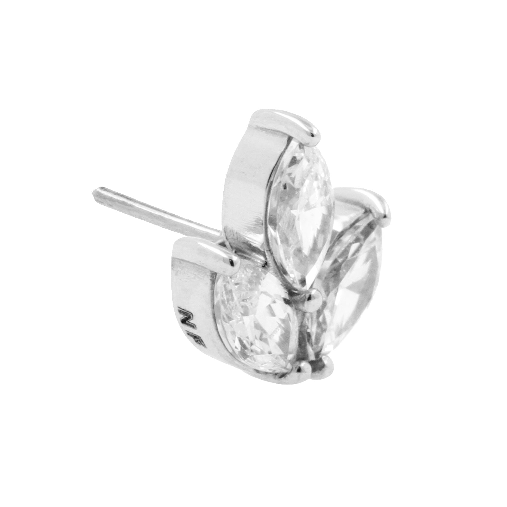 Nickel-Free Stainless Steel Zirconia Marquise Cluster Silver instantly adds a stylish touch to your piercing. This Threadless Top is made of Nickel-Free Stainless Steel. The threadless system allows you to easily combine this top with all our bars, which we call Threadless Base, for a perfect fit and ultimate comfort.