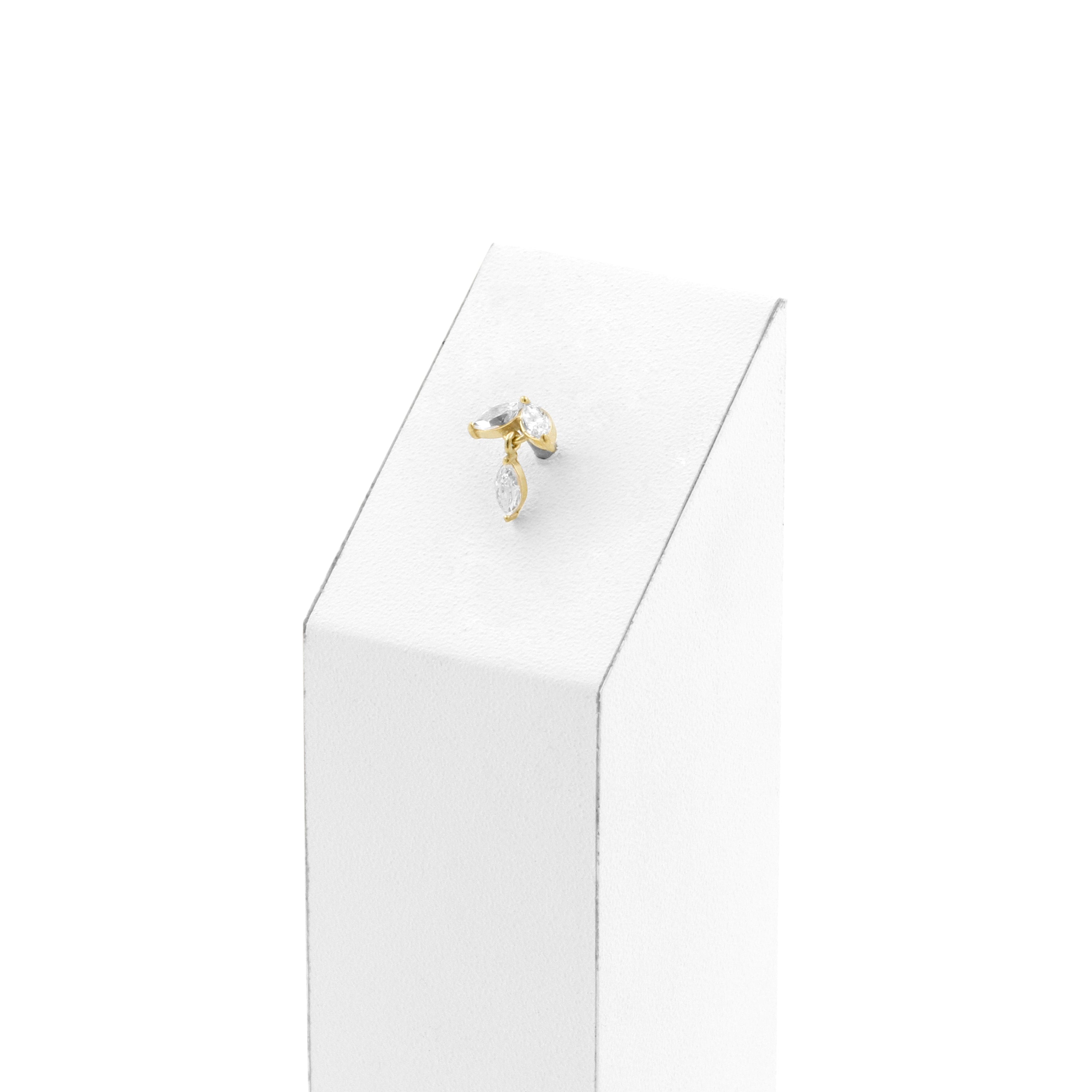 Nickel-Free Stainless Steel - Zirconia Marquise Dangle - Gold instantly adds a stylish touch to your piercing. This Threadless Top is made of Nickel-Free Stainless Steel with a cubic zirconia in Clear. The threadless system allows you to easily combine this top with all our bars, which we call Threadless Base, for a perfect fit and ultimate comfort.