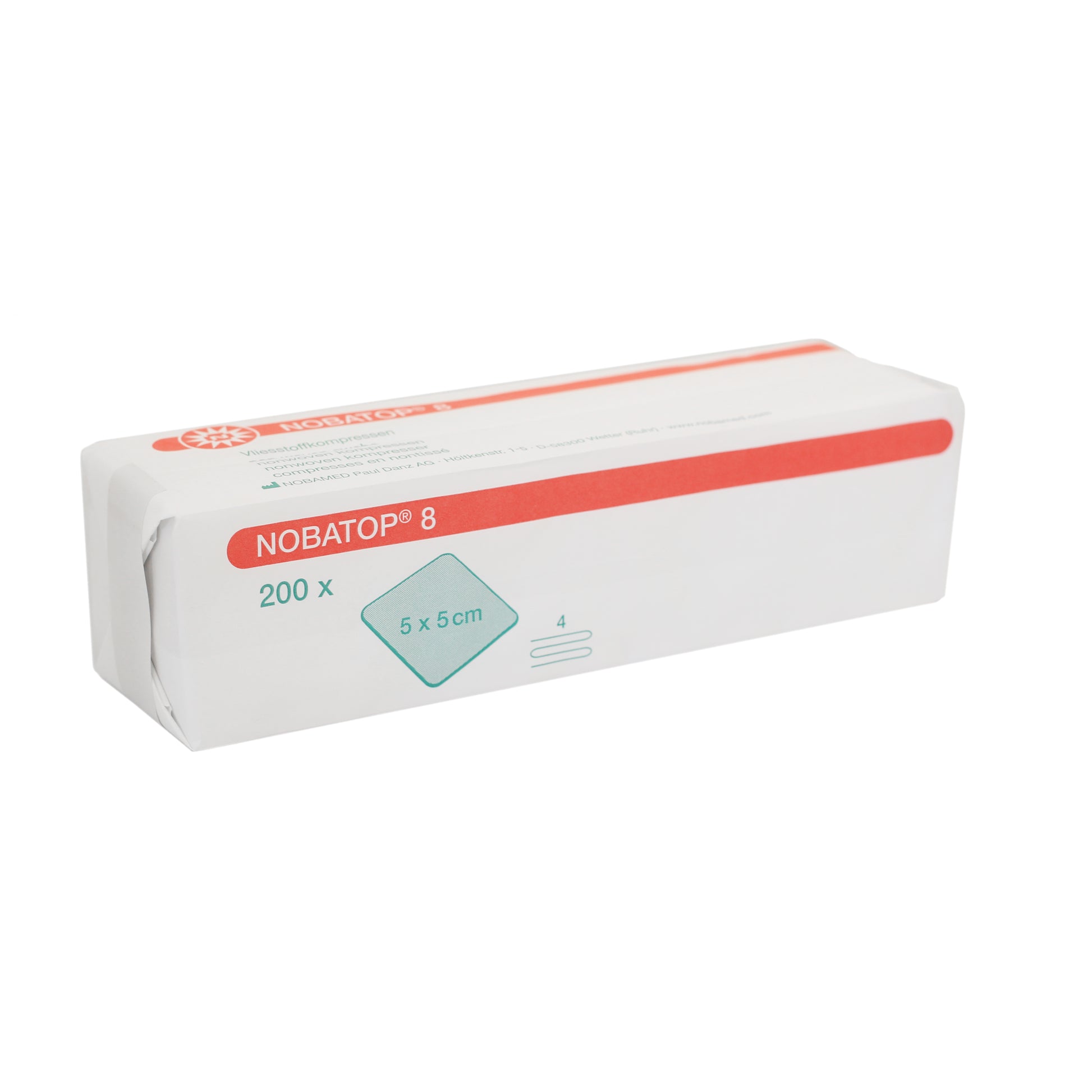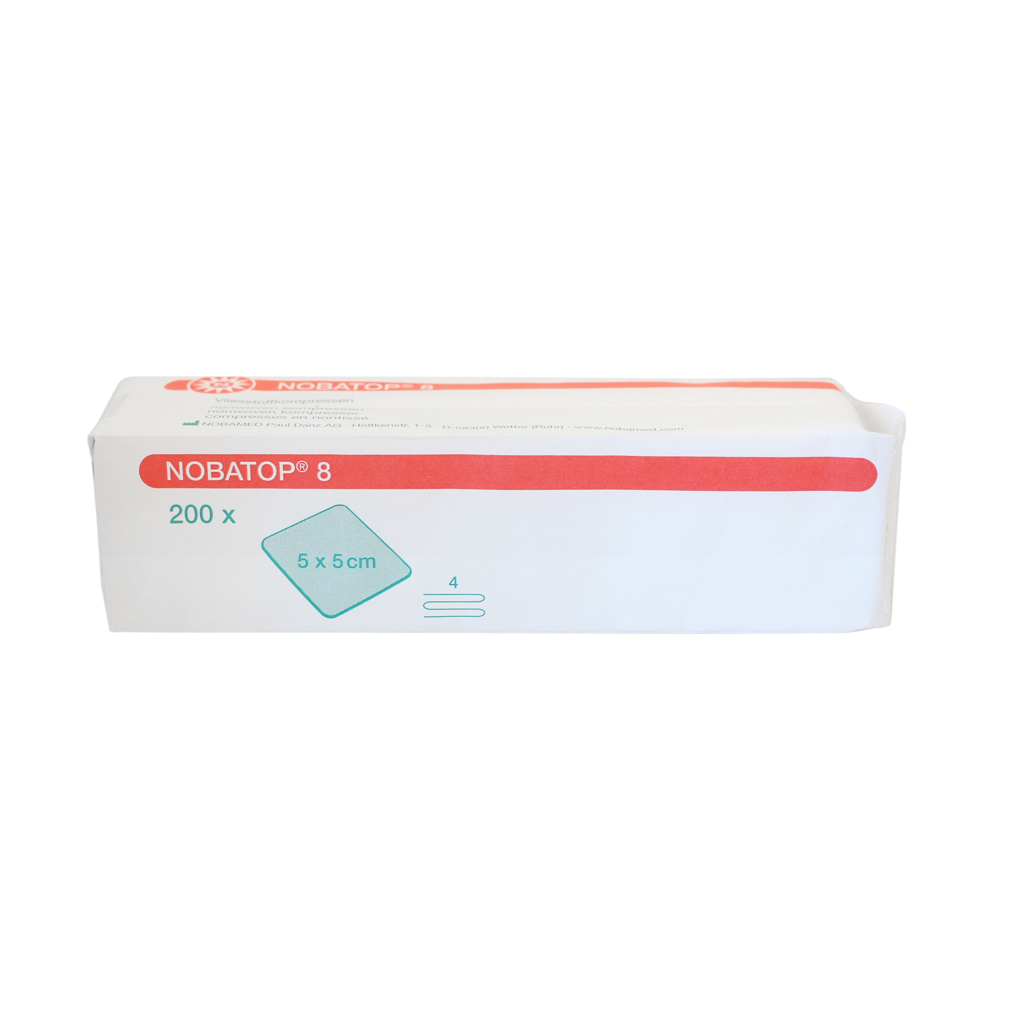 Non-sterile compresses, 5 x 5 cm. Packed per 200 pcs.