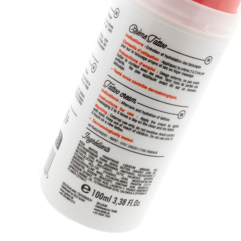 De ideale verzorging voor je tattoos! Fijne creme van Otzi, uit de Easytattoo®-reeks. Deze tattoo crème laat zich makkelijk uitsmeren zonder te vlekken of een plakkerige huid achter te laten. De creme is op basis van panthénol wat jeuk en branderigheid verzacht en zorgt voor een snelle, mooie genezing van je tattoo. De créme bevat geen parabenen en is verpakt in een handige pompflacon met een inhoud van 50 ml.